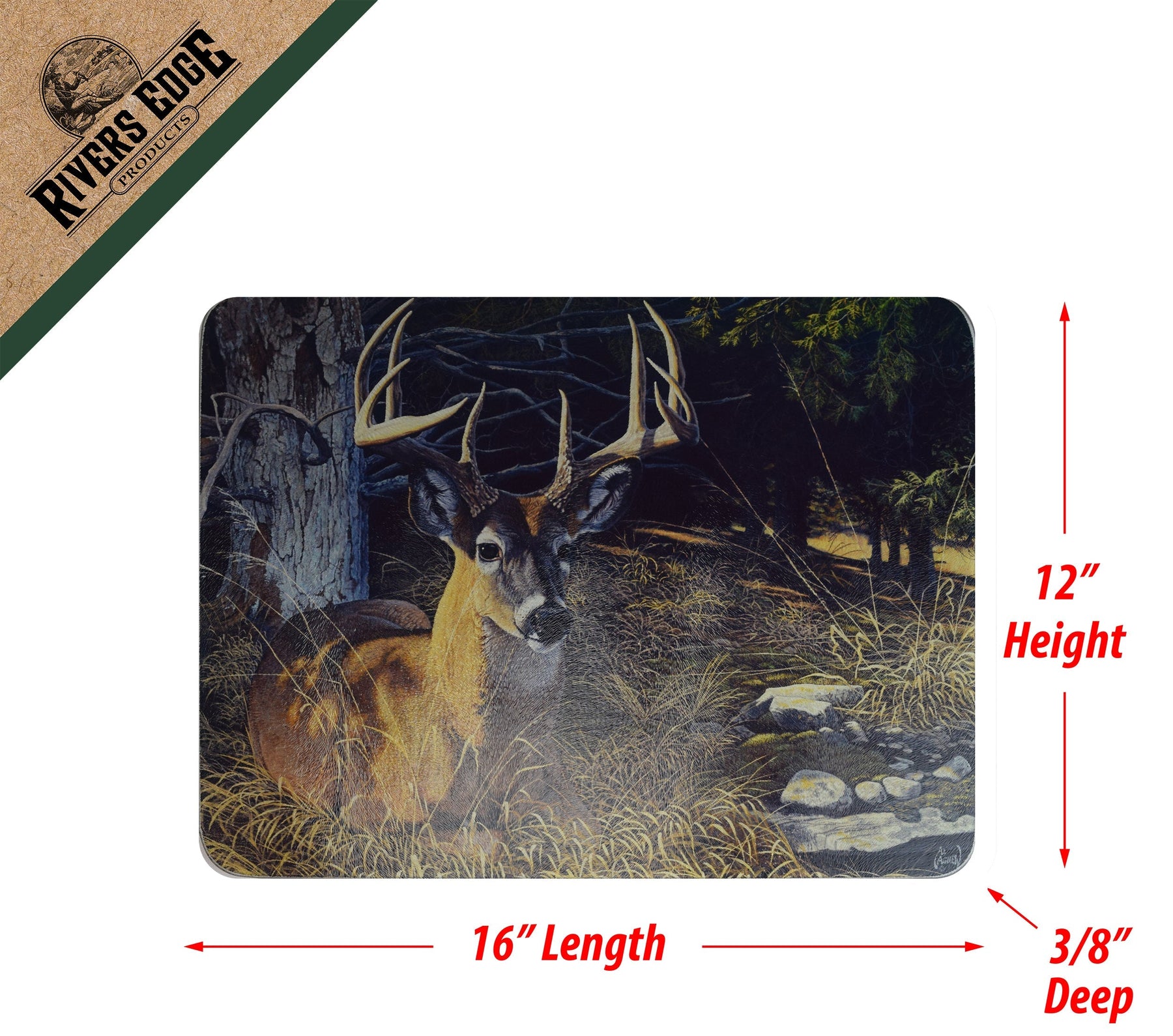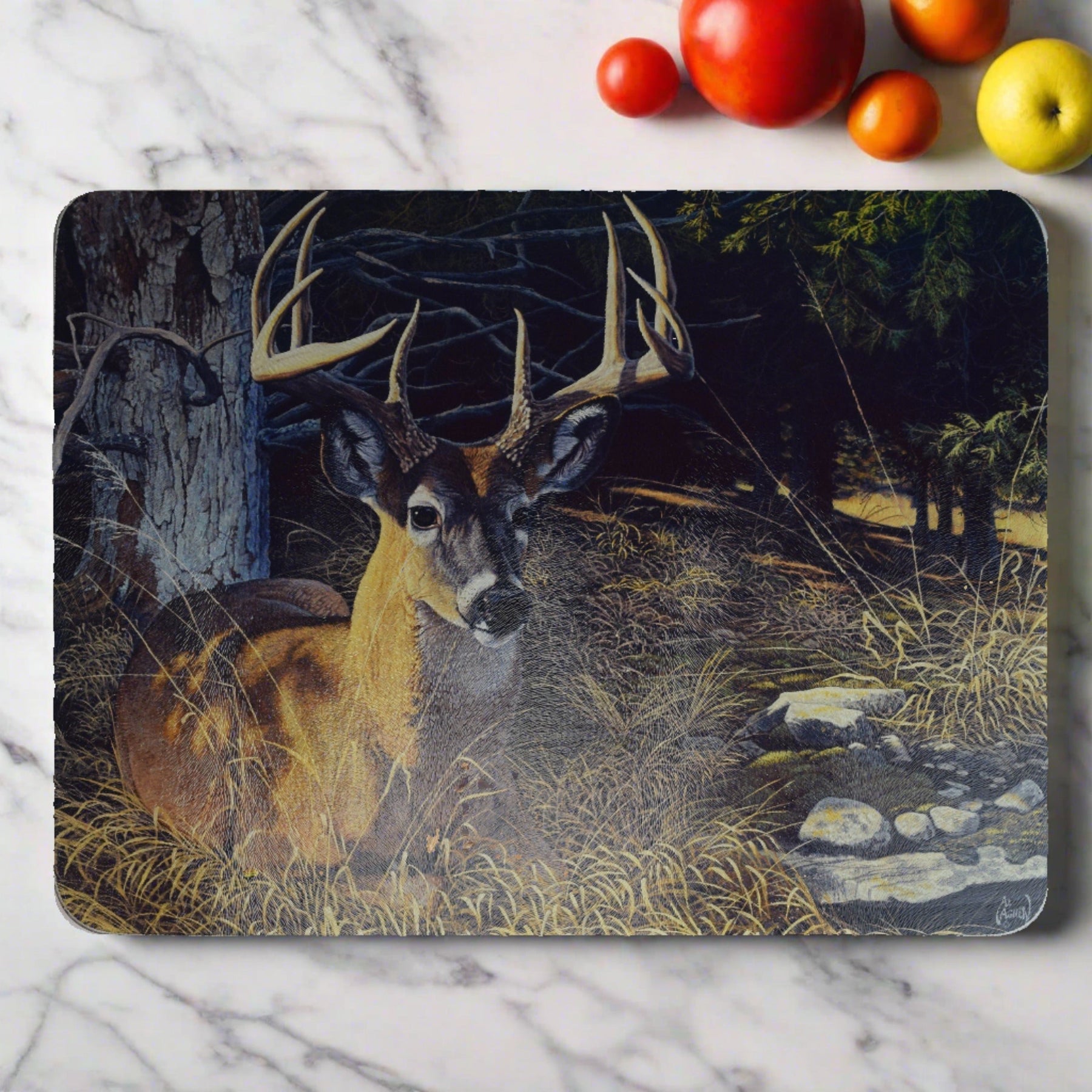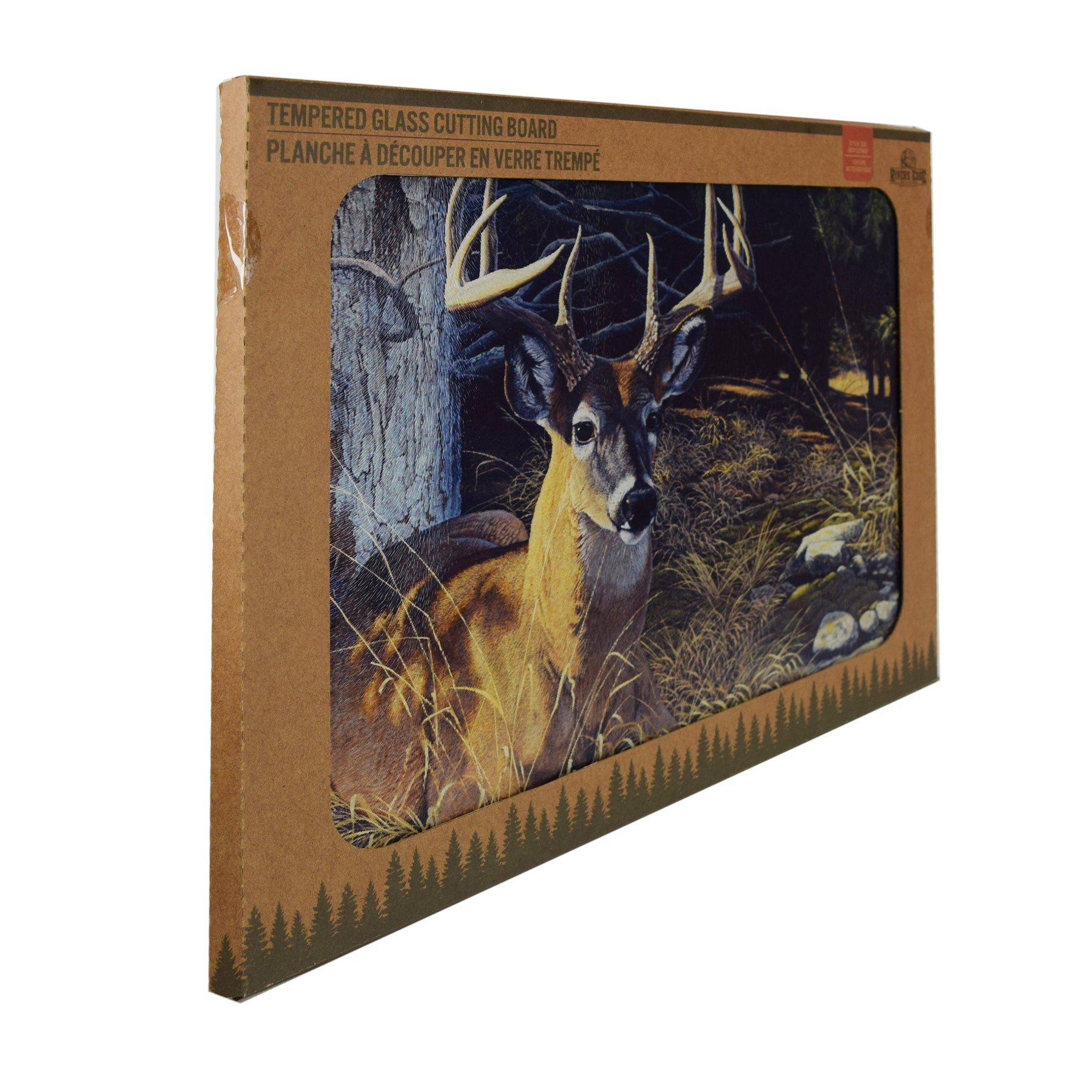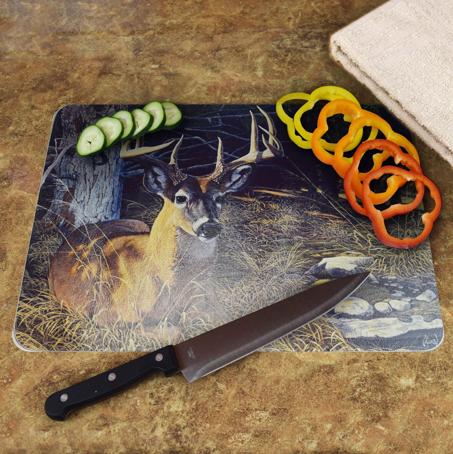 These tempered glass cutting boards from Rivers Edge Products features a lone buck in the forest.