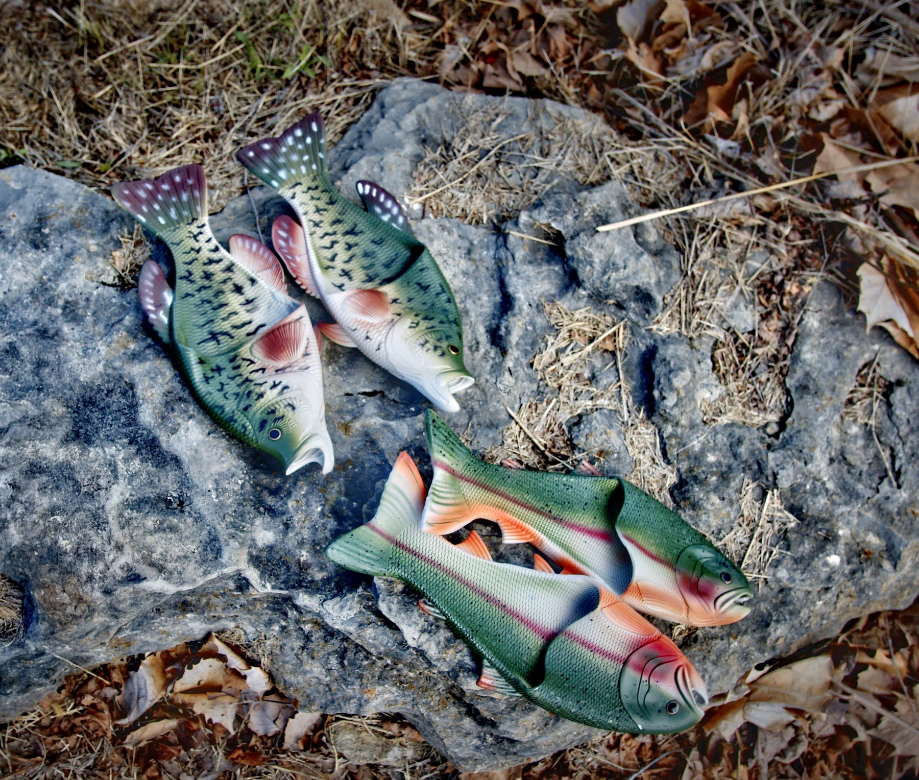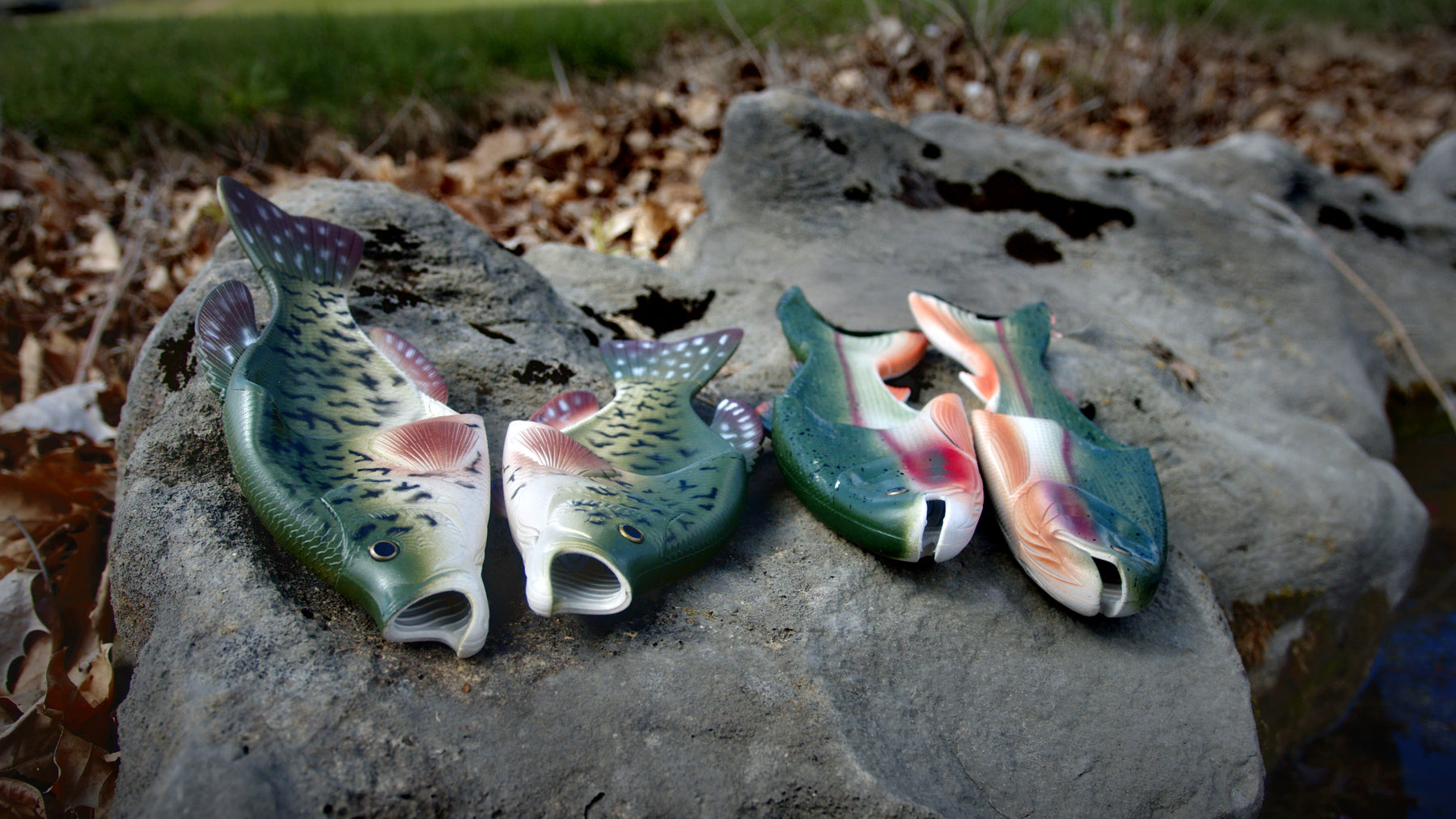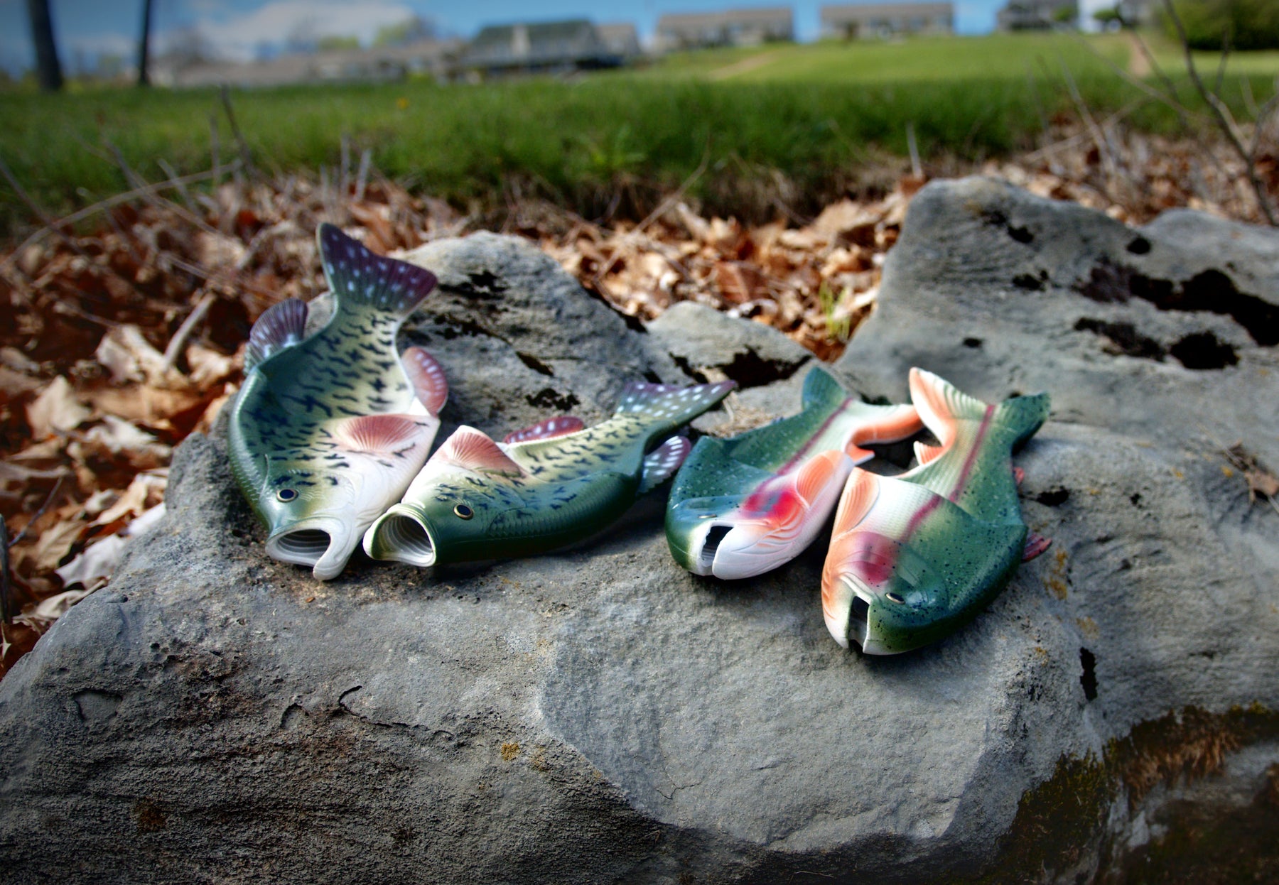 These fun, fashionable fish sandals from Rivers Edge are designed to bring a smile to outdoor enthusiasts. Washing your finned friends is easy; simply rinse the sandals off with cool water to restore them to their original cleanliness. The fish sandals are quite a catch as a humorous, practical addition to your collection of footwear.