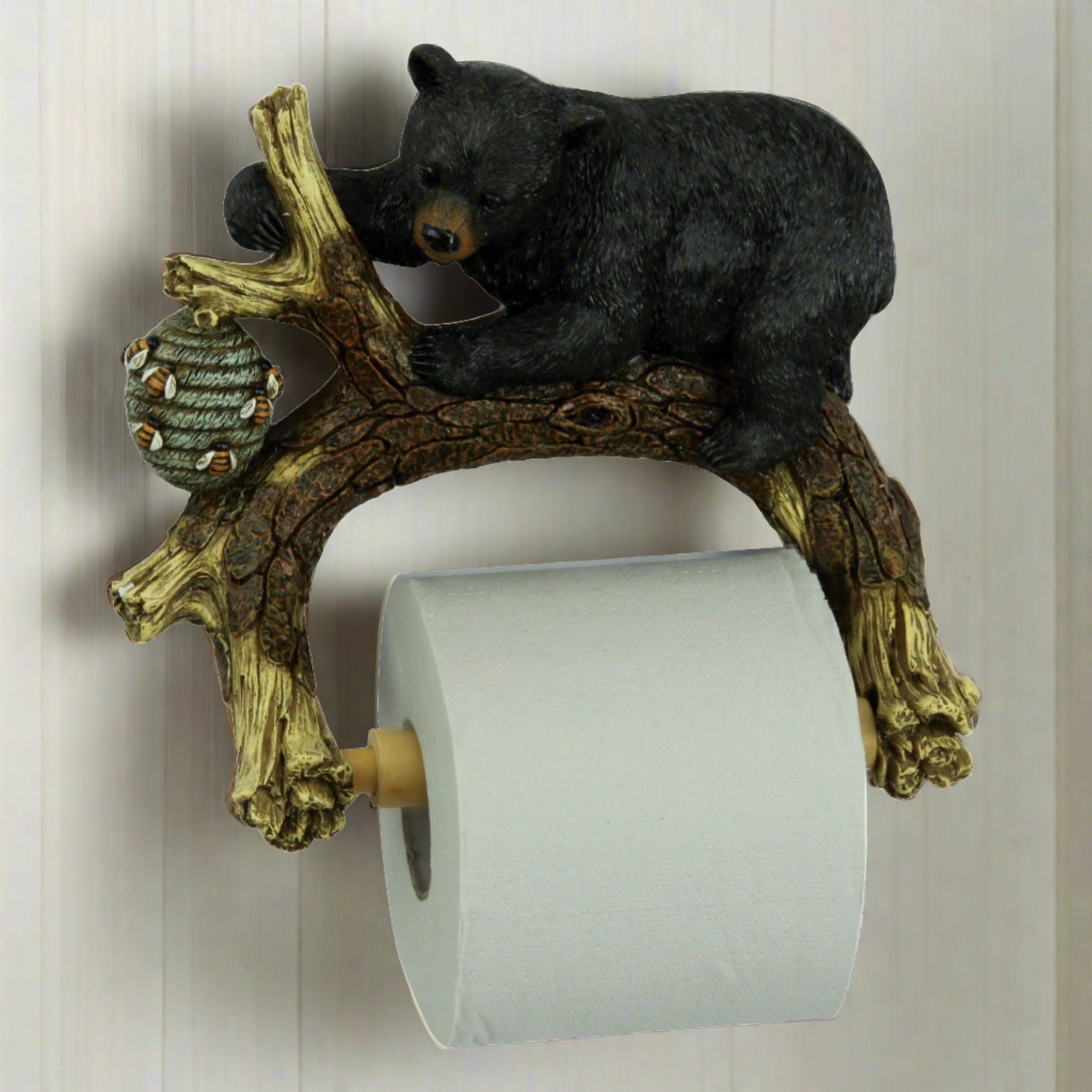 The Rivers Edge Products bear on a branch with a beehive toilet paper holder is a must have for every bear lover.