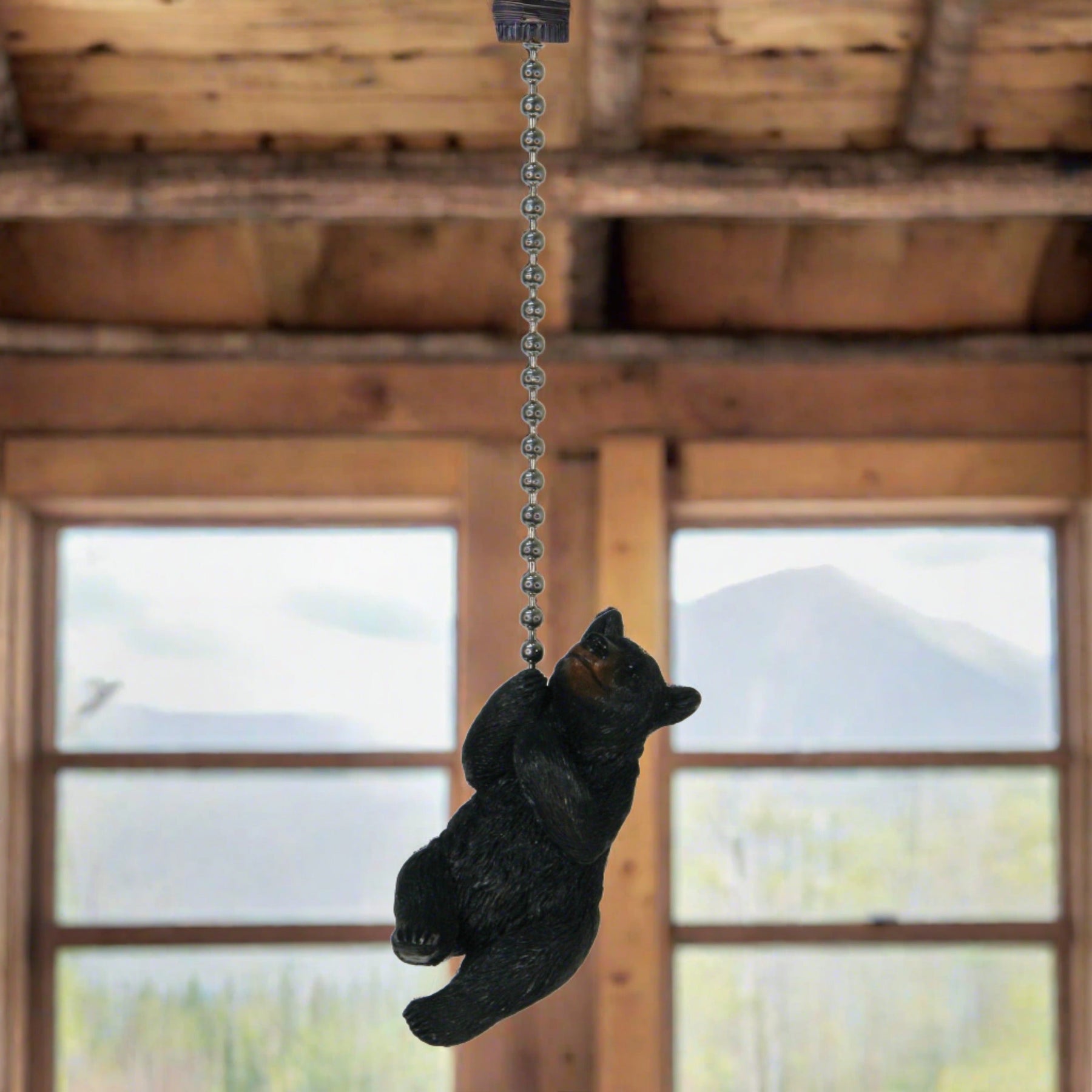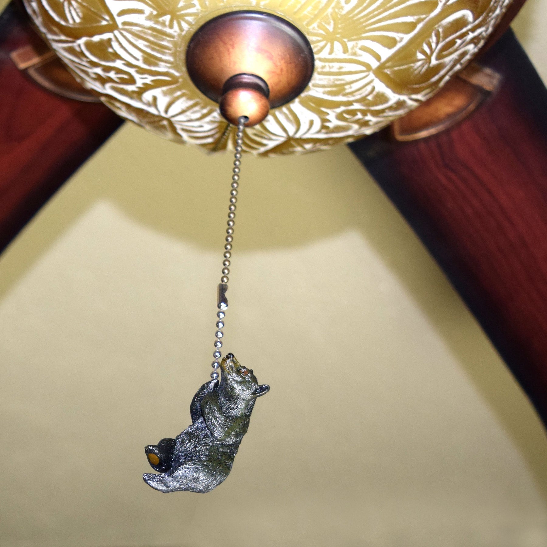 The ornament is shaped like a black bear cub hanging onto the chain and makes for a great addition for your outdoors themed decor. This ceiling fan pull ornament will not only enhance your current decor, it extends your current fan pull chain so it is easier to reach.