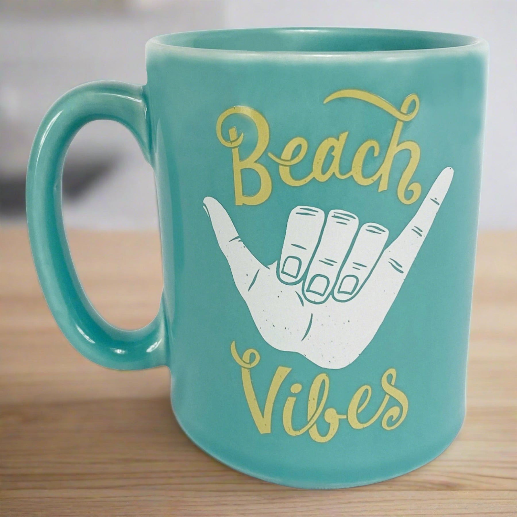 This beach vibe ceramic mug by River's Edge Products is ideal for any beachgoer. Drink your morning coffee, tea, hot chocolate, or other beverage out of this highly detailed mug.