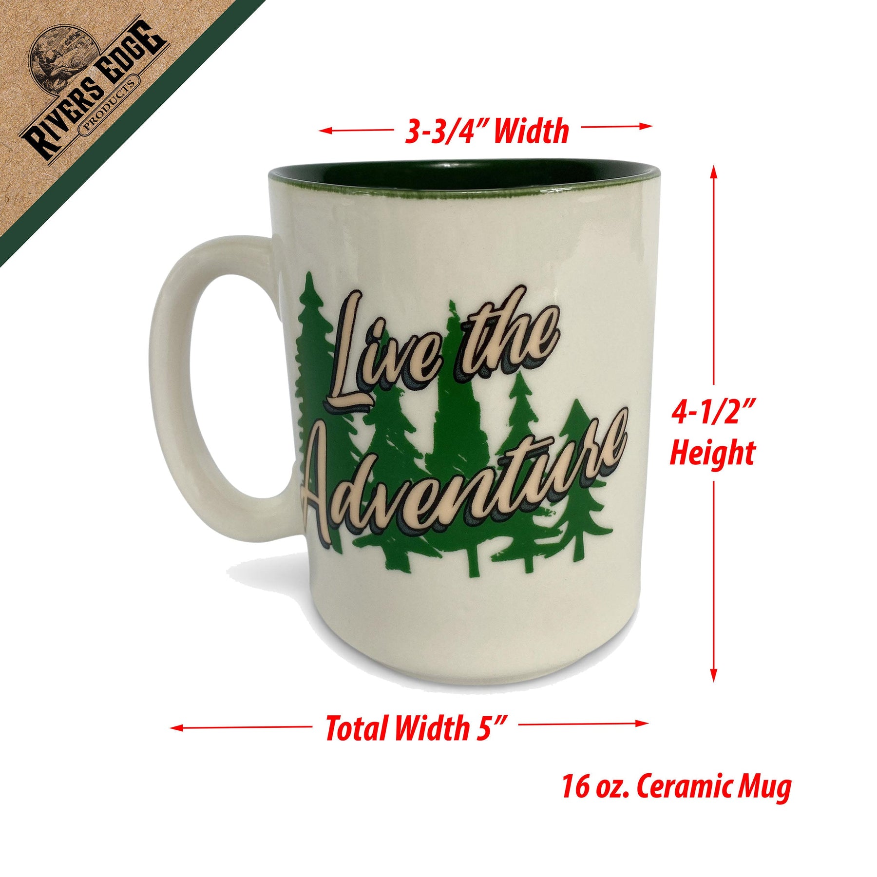 This camping scene ceramic mug by River's Edge Products is ideal for any outdoor enthusiast. Drink your morning coffee, tea, hot chocolate, or other beverage out of this highly detailed mug.