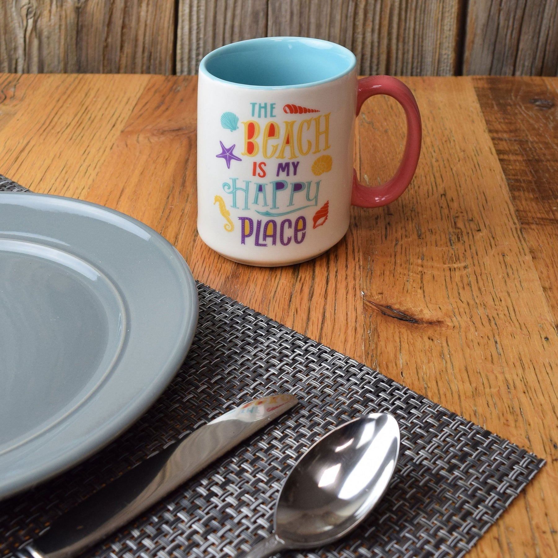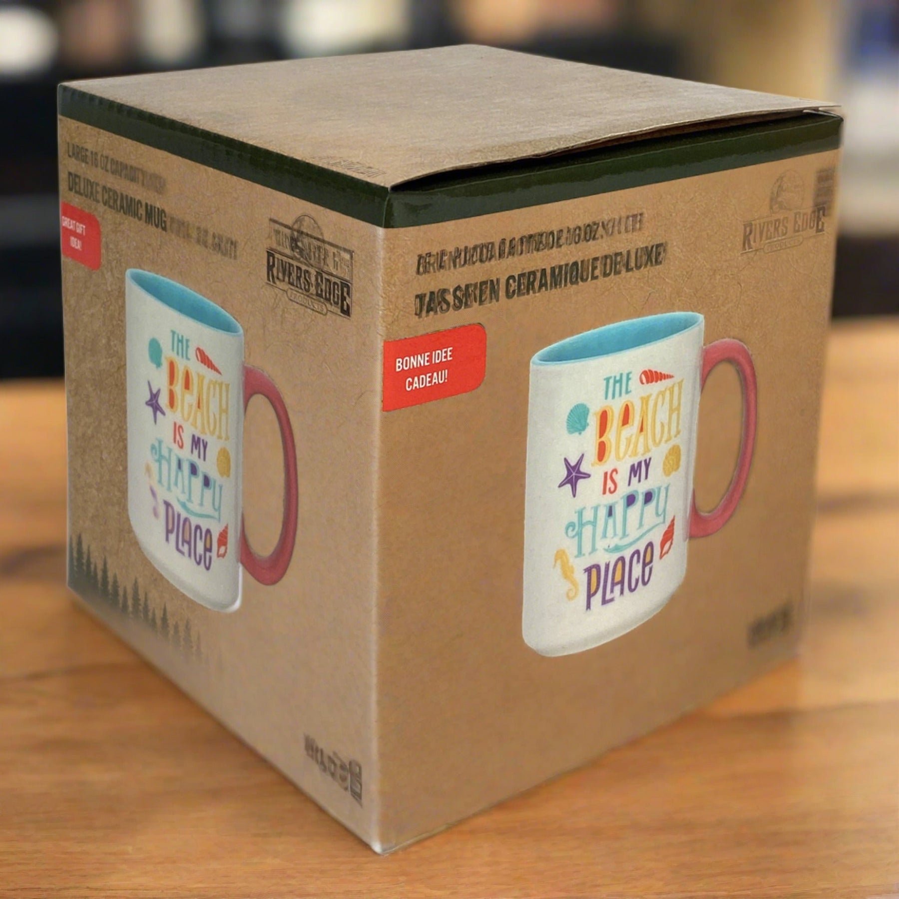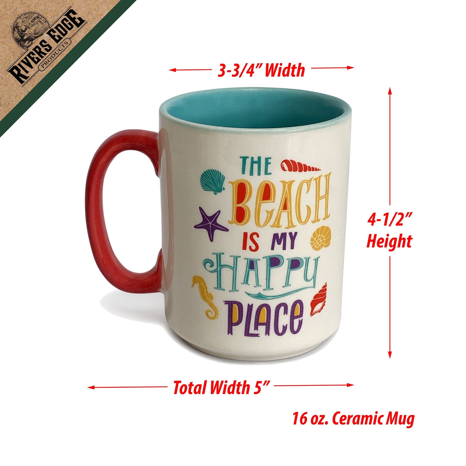 This beach scene ceramic mug by River's Edge Products is ideal for any beachgoer. Drink your morning coffee, tea, hot chocolate, or other beverage out of this highly detailed mug.