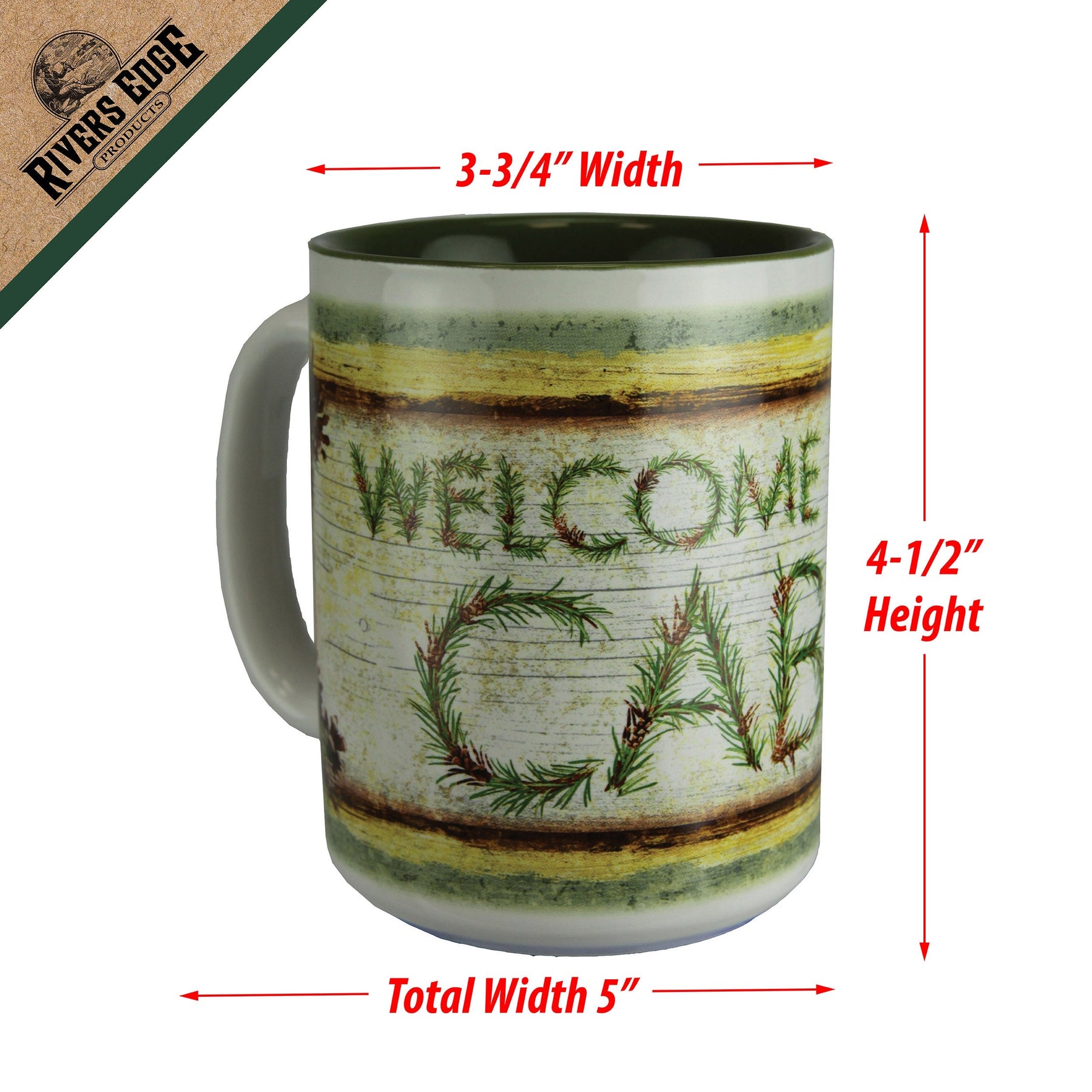This welcome cabin ceramic mug by River's Edge Products is ideal for any outdoor enthusiast. Drink your morning coffee, tea, hot chocolate, or other beverage out of this highly detailed mug.