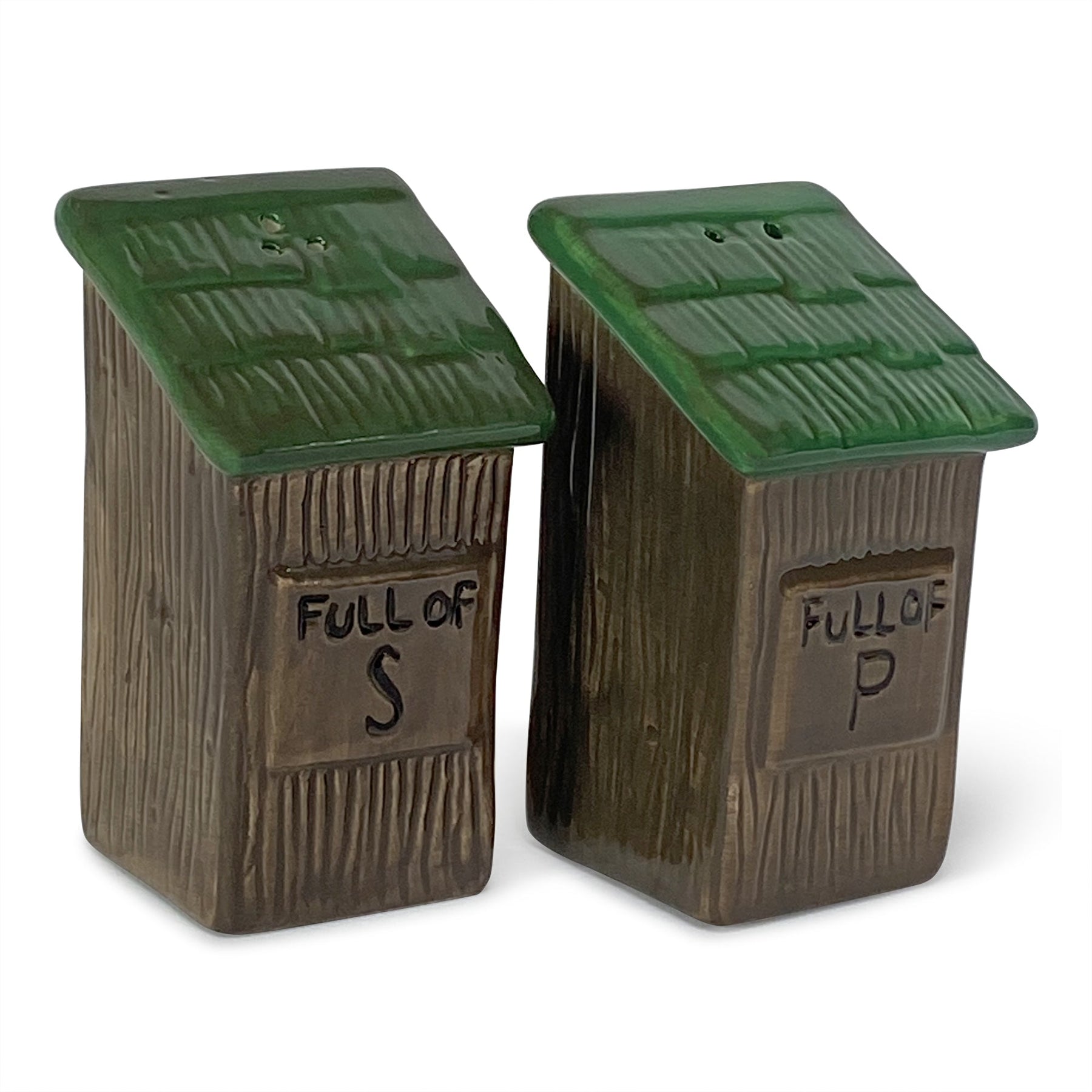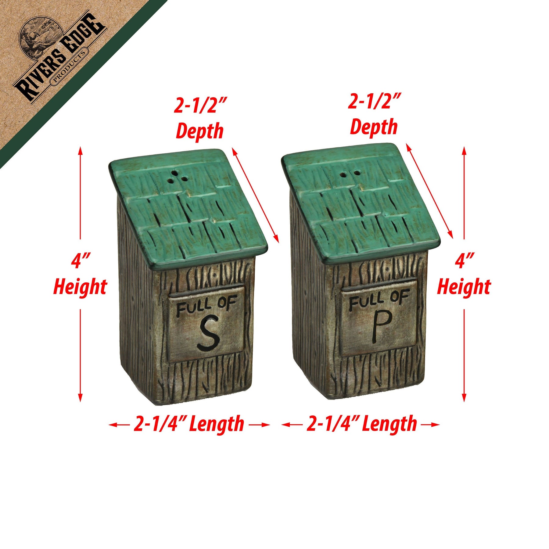 These outhouse salt and pepper shakers from Rivers Edge Products are sold as a matching pair and will be a welcome addition to your dining room table. These salt and pepper shakers are made of ceramic and are painted to resemble a pair of outhouses. Marked with an S and P for easy identification so you'll never be mistaken when you season your food. The Outhouse and Pepper Shakers will allow you to season your meal with style.