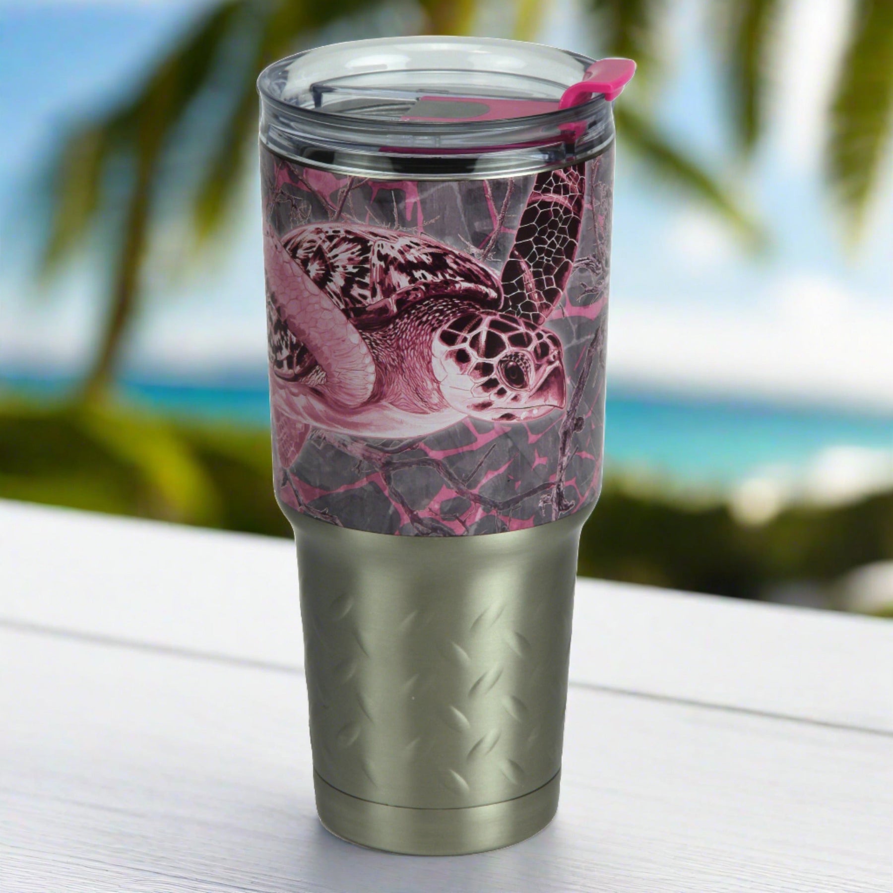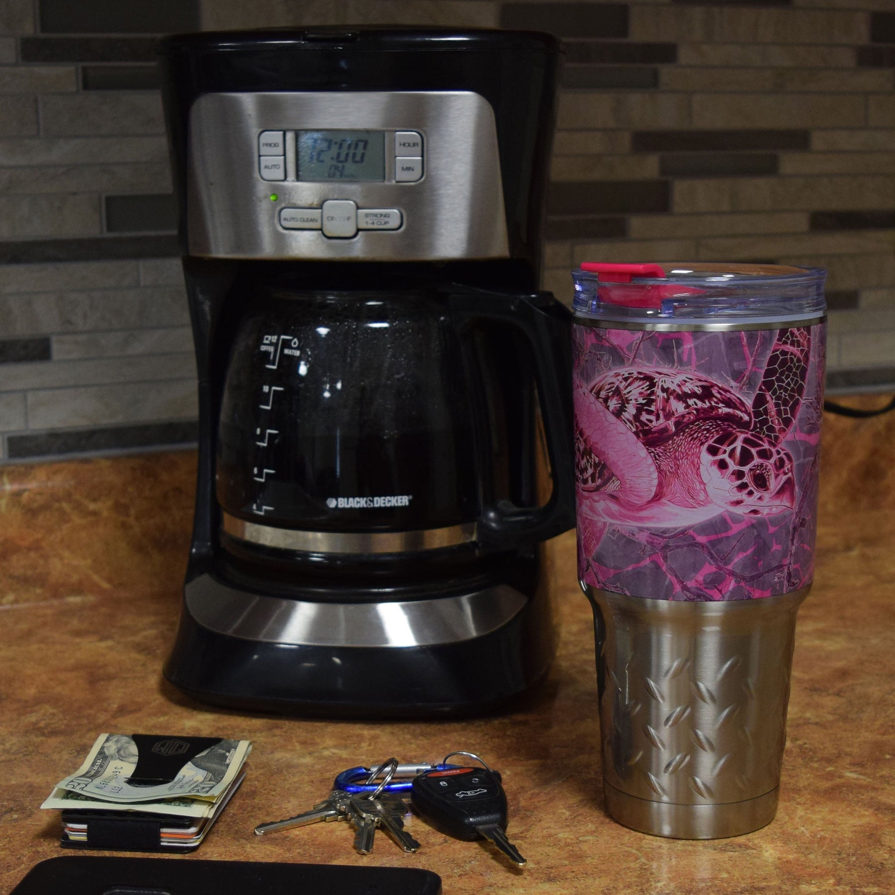 Unique embossed pattern provides a sure grip. Reduced size base fits most vehicle drink holders. 24 oz size will fit in many single serving pod type coffee makers. Straw friendly lid - no need to buy another lid for straw use. Compatible with many aftermarket tumbler handles and holders Top rack dishwasher safe, but for best art longevity and fade resistance, hand washing is recommended.