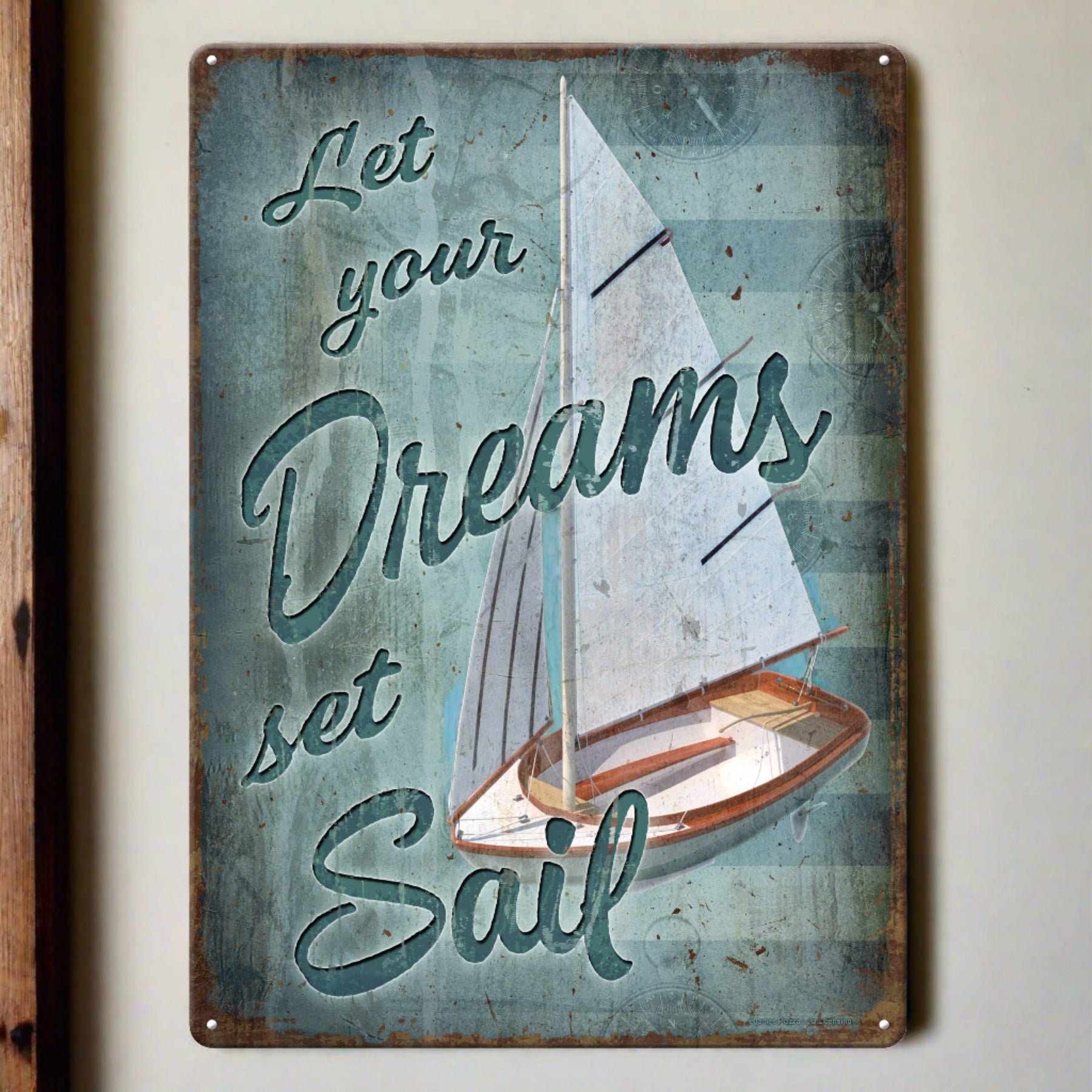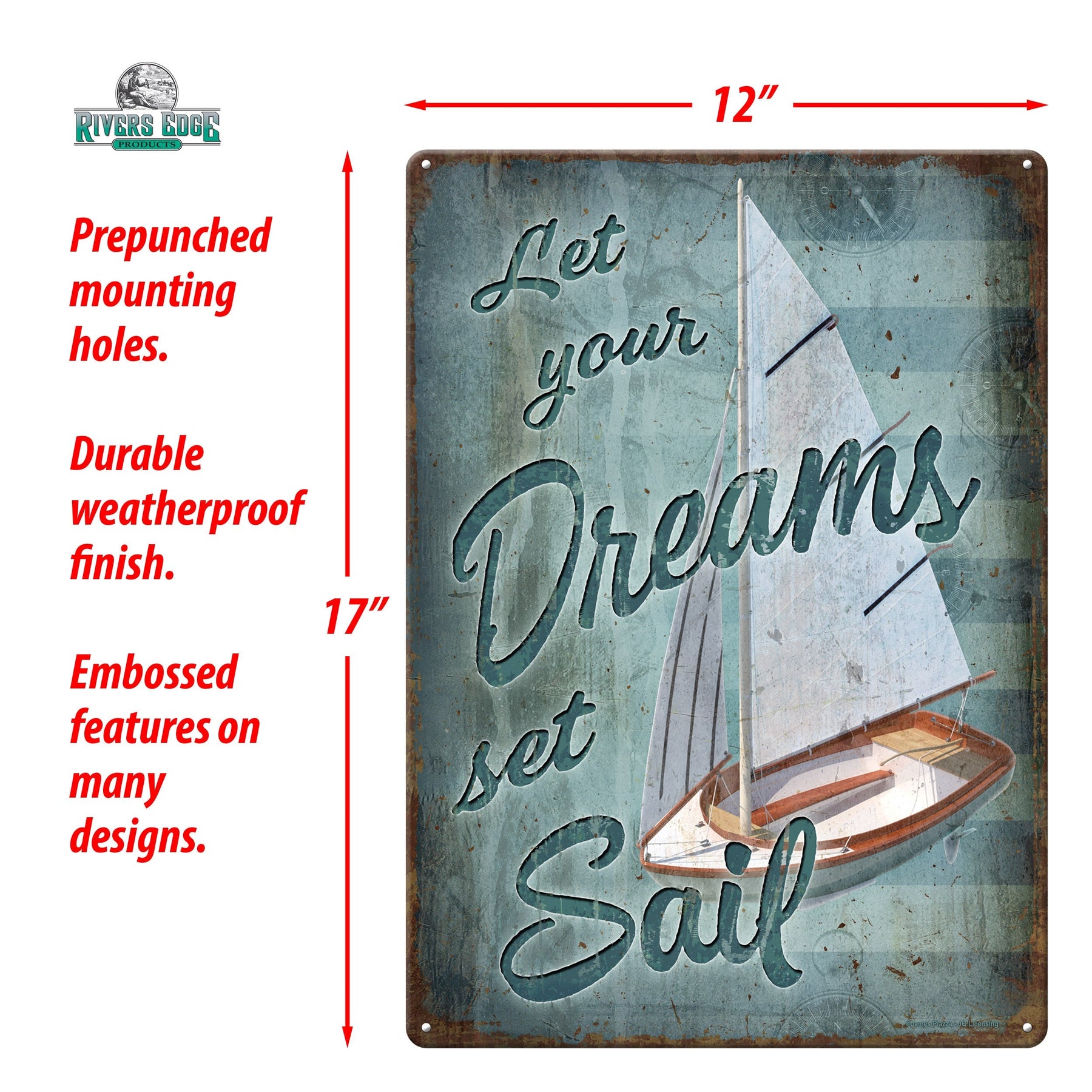 Does the beach house need some positive inspiration? This metal tin sign from Rivers Edge Products is ideal wall decor for seaside or nautical themed homes. Customize your boat dock, garage, home bar, or coastal living space with this tin sign.