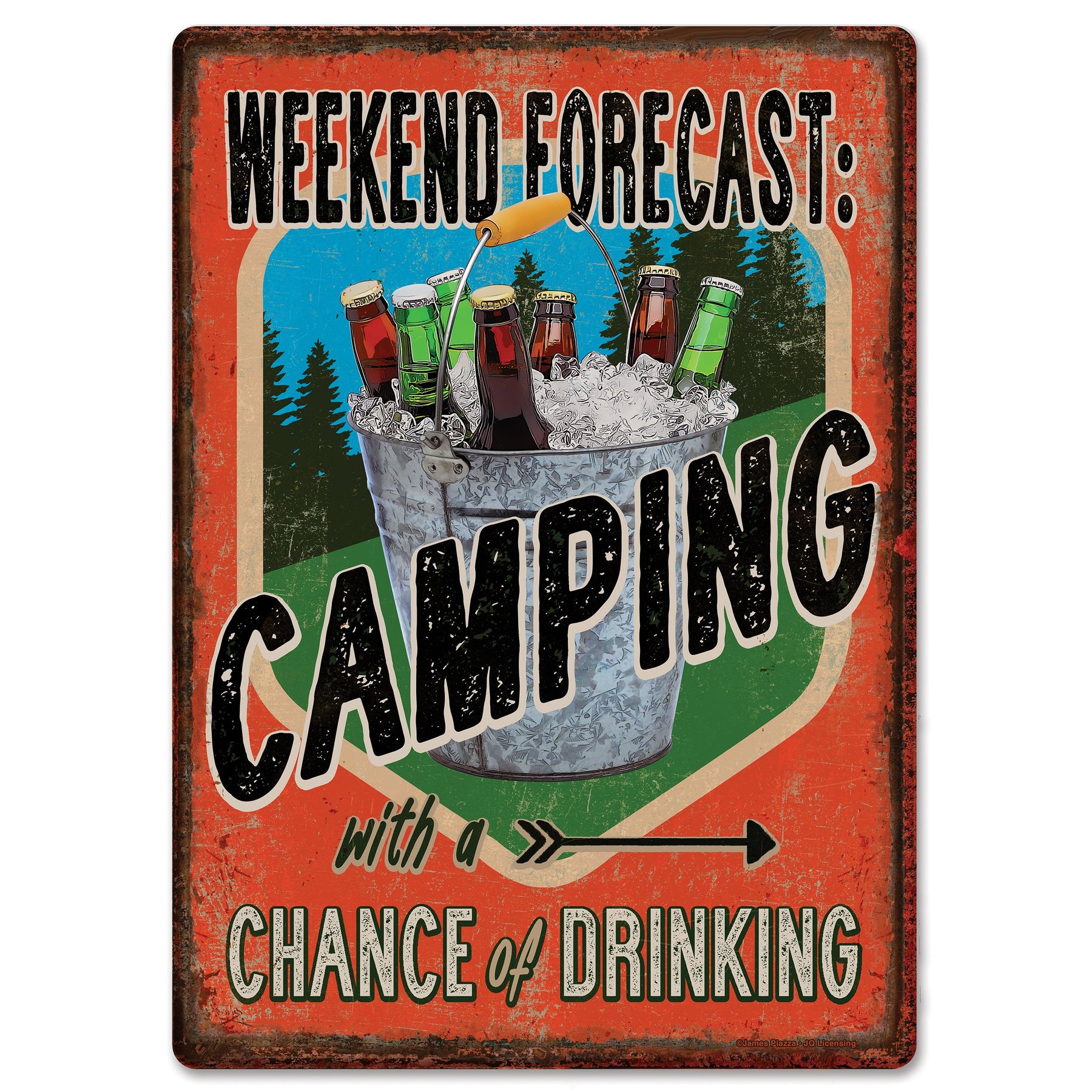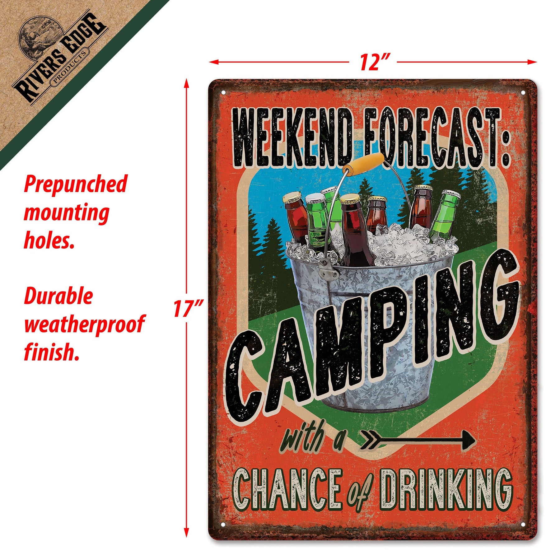 The forecast looks great with just a slight chance of an interruption! This metal tin sign from Rivers Edge Products is ideal wall decor for anyone with a sense of humor. Customize your garage, home bar, or living space with this expressive tin sign.