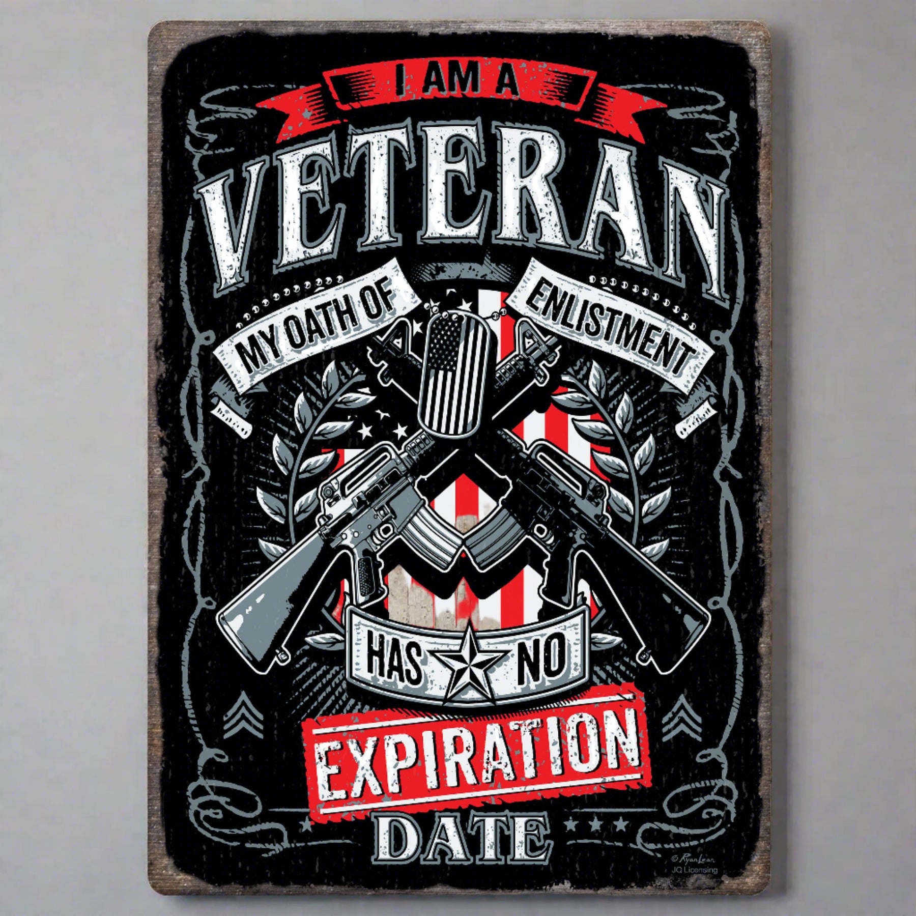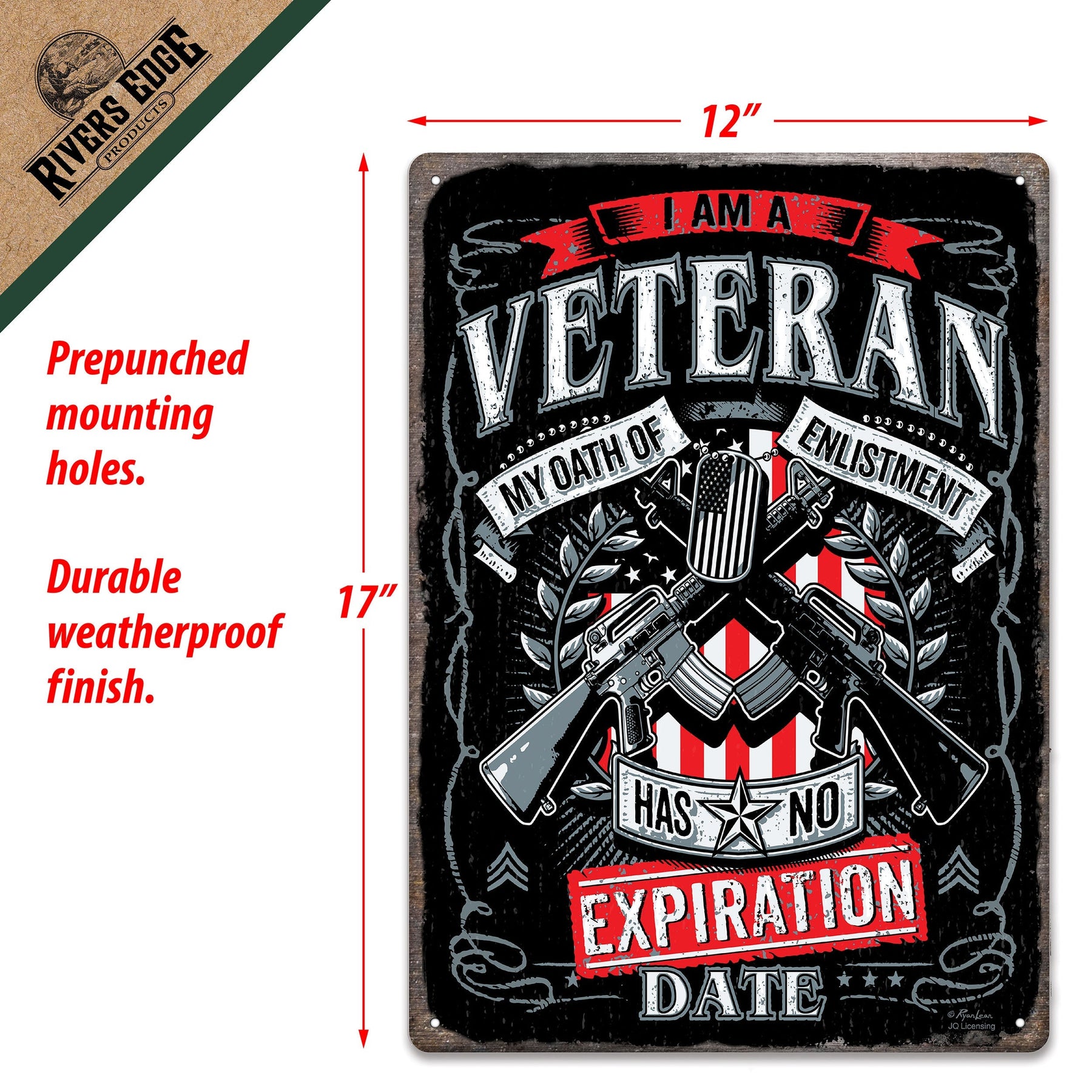 This metal tin sign from Rivers Edge Products is ideal wall decor for any veteran. Customize your garage, home bar, or living space with this expressive tin sign.