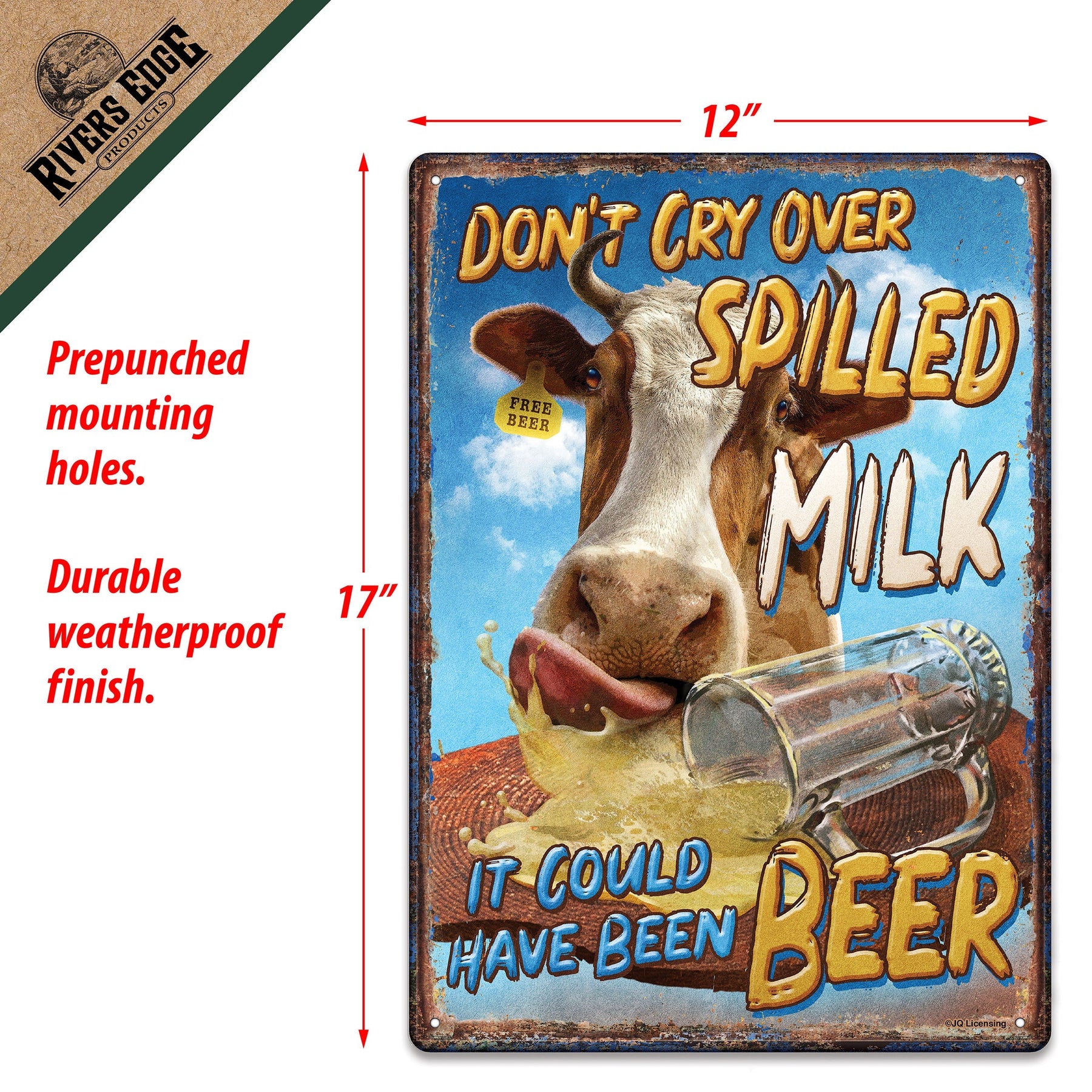 Metal Tin Signs, Funny, Vintage, Personalized 12-Inch x 17-Inch - Milk Beer