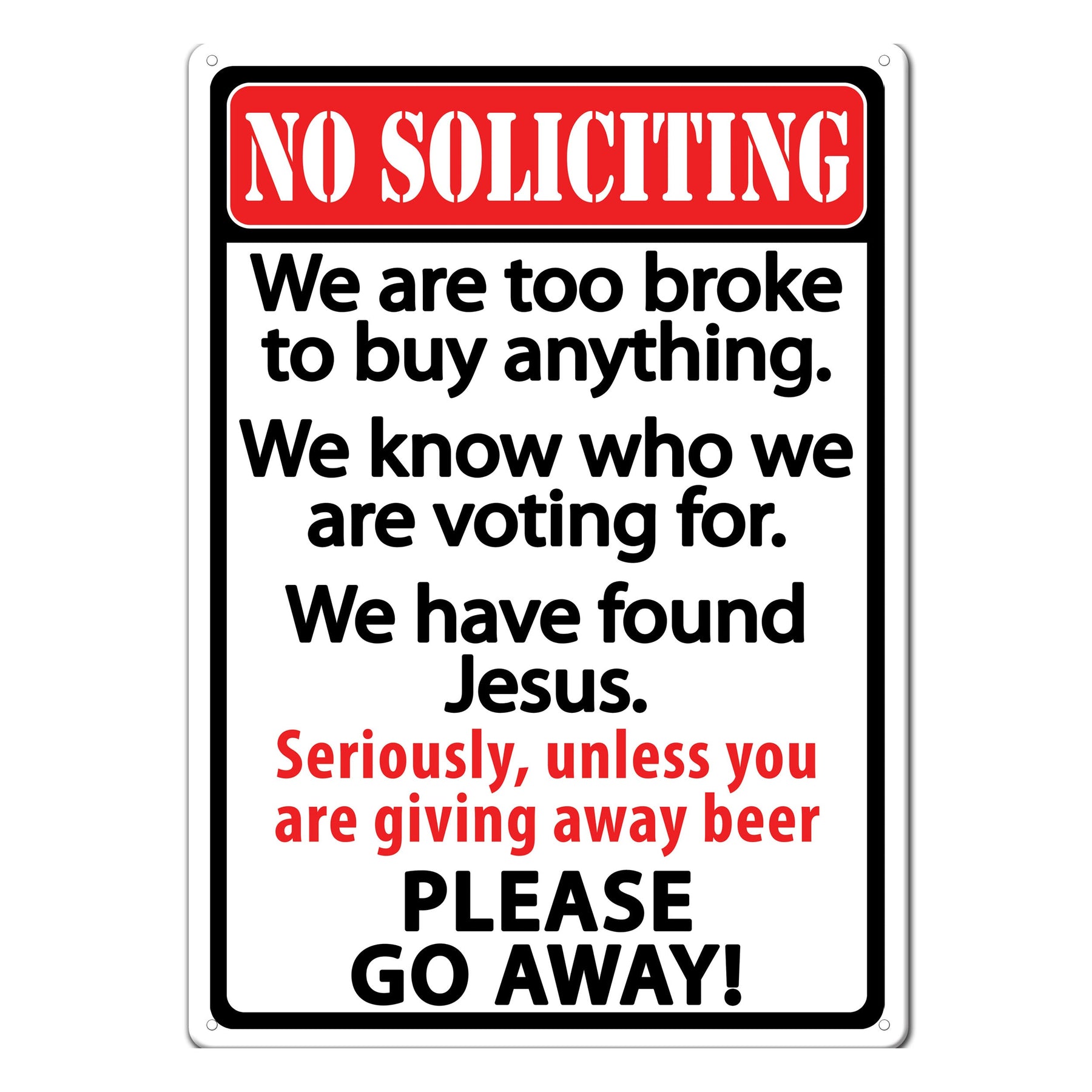 How's this for being honest and upfront with solicitors? This metal tin sign from Rivers Edge Products is ideal wall decor for anyone with a sense of humor. Customize your front porch, home bar, or living space with this expressive tin sign.