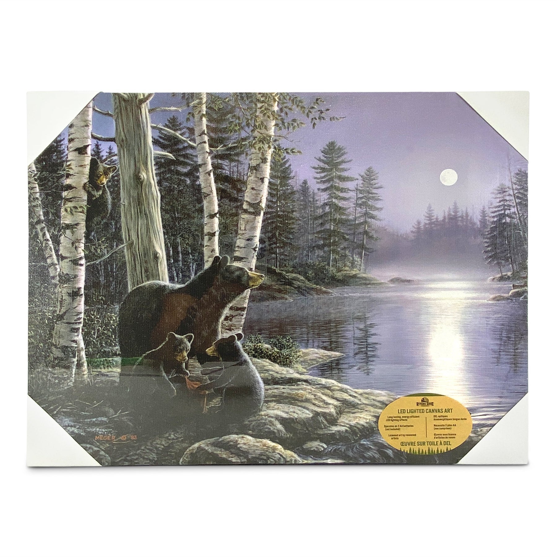 This LED artwork from River's Edge Products is titled "Moonlight Bears," by James Meger- MHS Licensing. Makes for a perfect gift for any outdoor enthusiast or a great addition to any outdoor themed home decor.