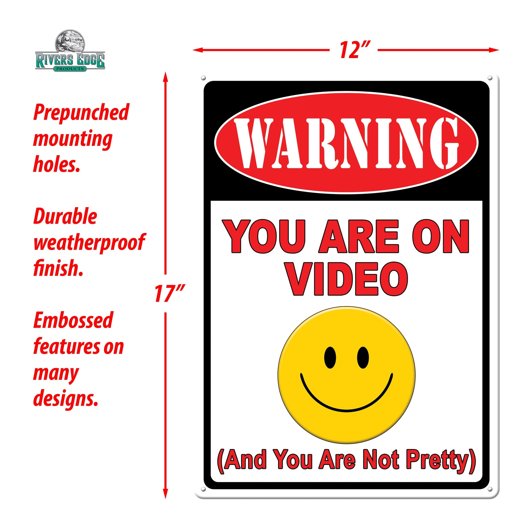 This sign is designed to be compatible with any video surveillance equipment. This metal tin sign from Rivers Edge Products is ideal wall decor for people with a sense of humor. Customize your garage, home bar, or living space with this funny tin sign.