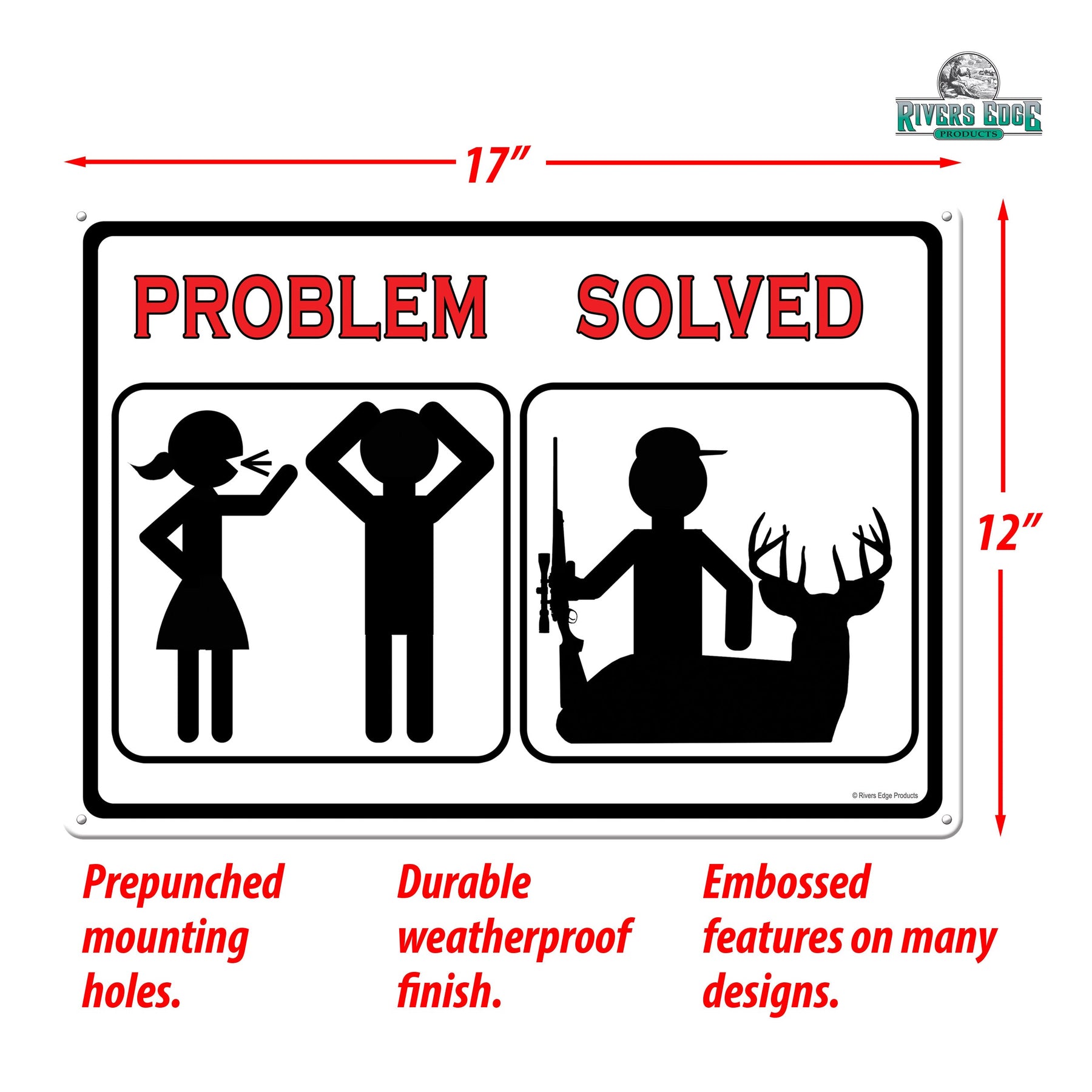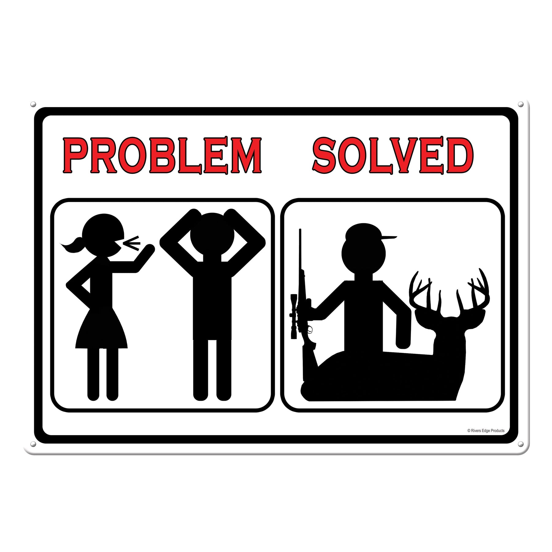 Going hunting will solve your problems. This metal tin sign from Rivers Edge Products is ideal wall decor for outdoor enthusiasts with a sense of humor. Customize your garage, home bar, or living space with this funny tin sign.