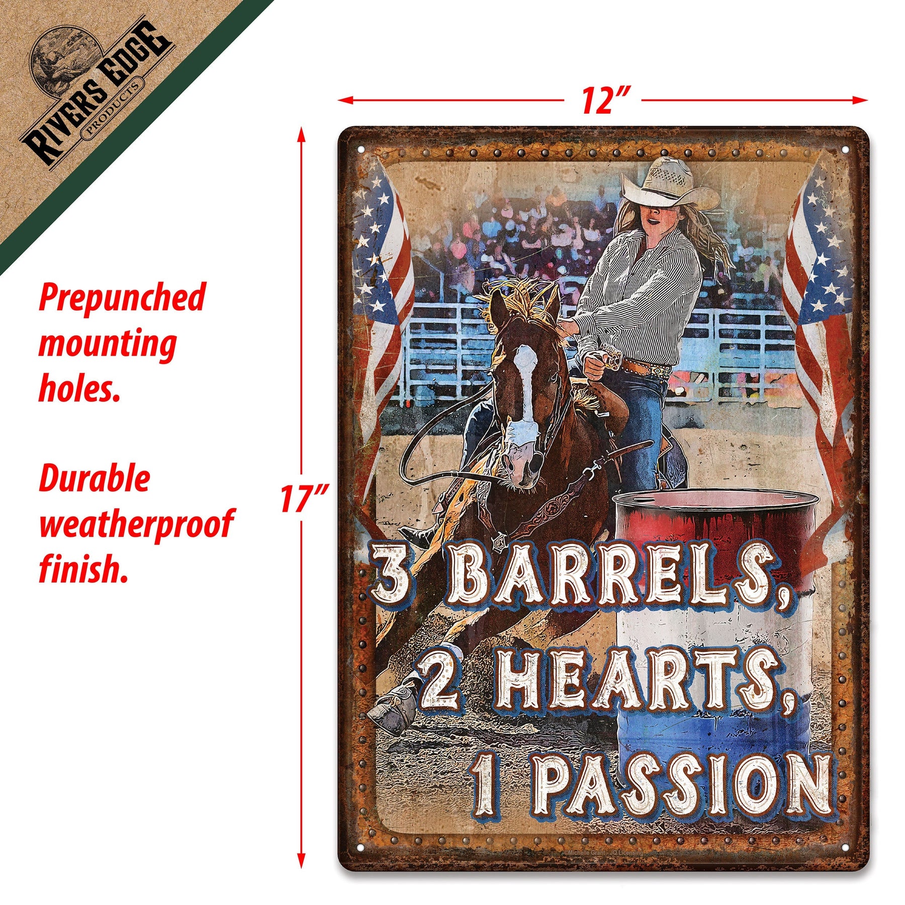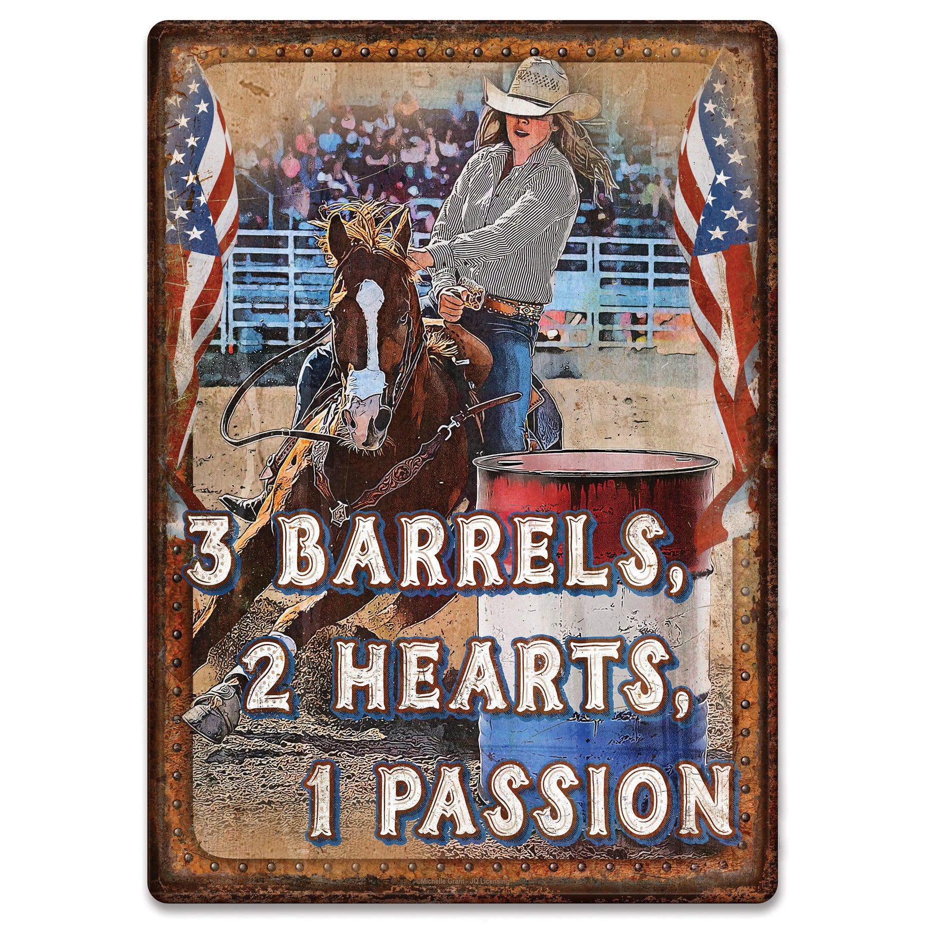 Only a competitive rider knows the rush of peeling thru a course of barrels, with a horse who knows what's at stake. Customize your garage, home bar, or living space with this expressive tin sign.