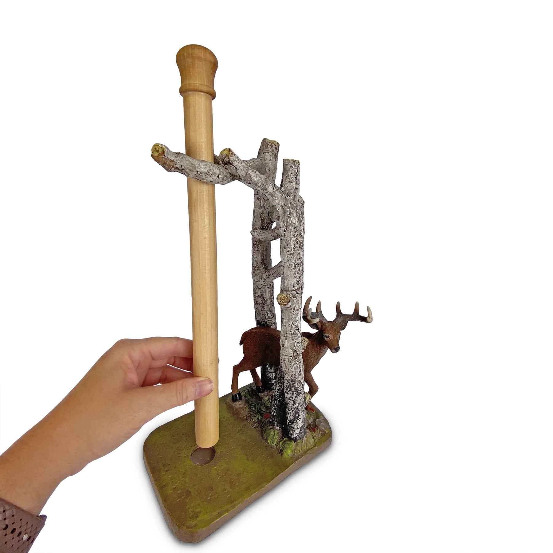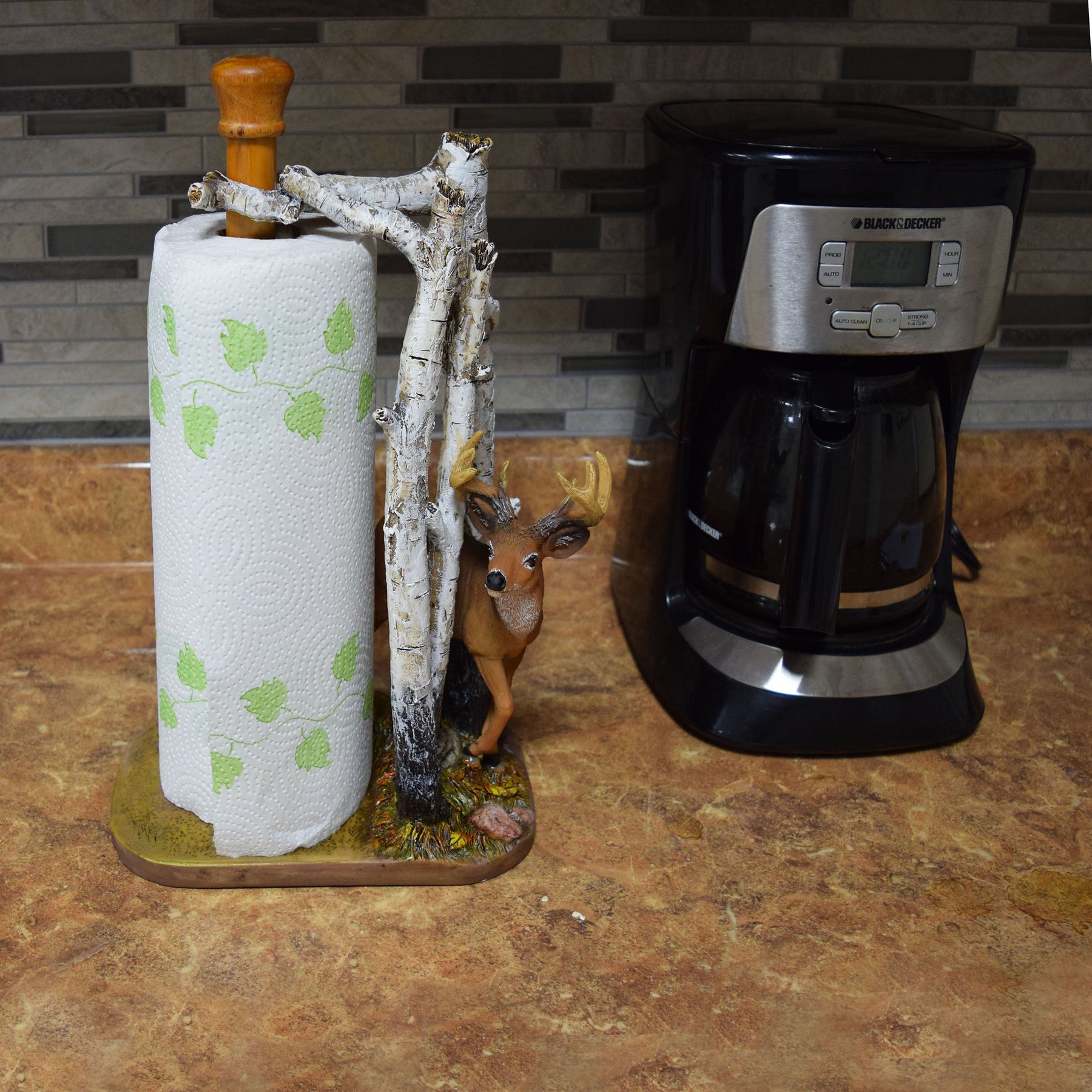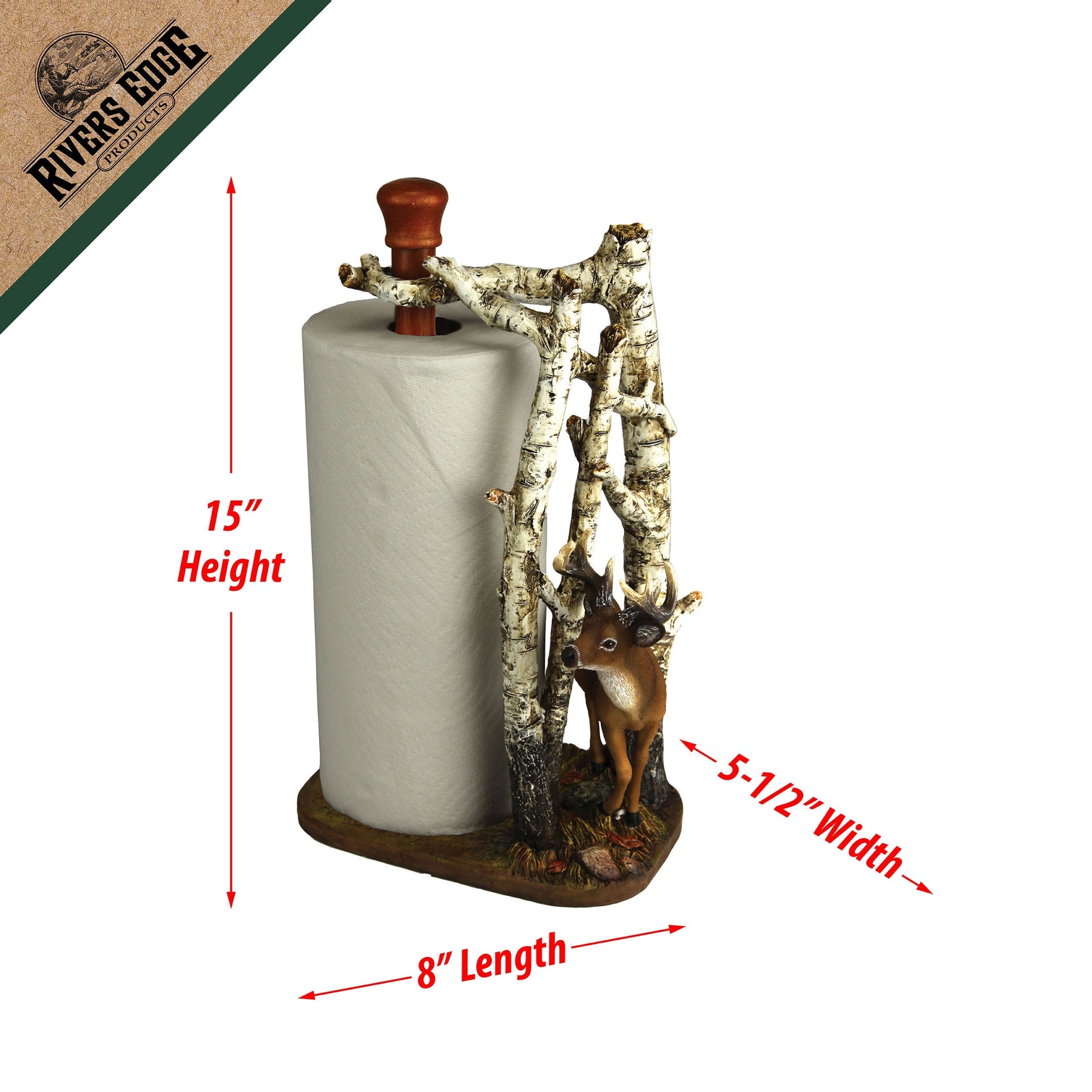 This paper towel holder from River's Edge Products is designed to sit on a kitchen countertop so you can keep your paper towels conveniently within reach. This paper towel holder features a deer and tree branches. The deer paper towel holder will bring some flair into any kitchen.