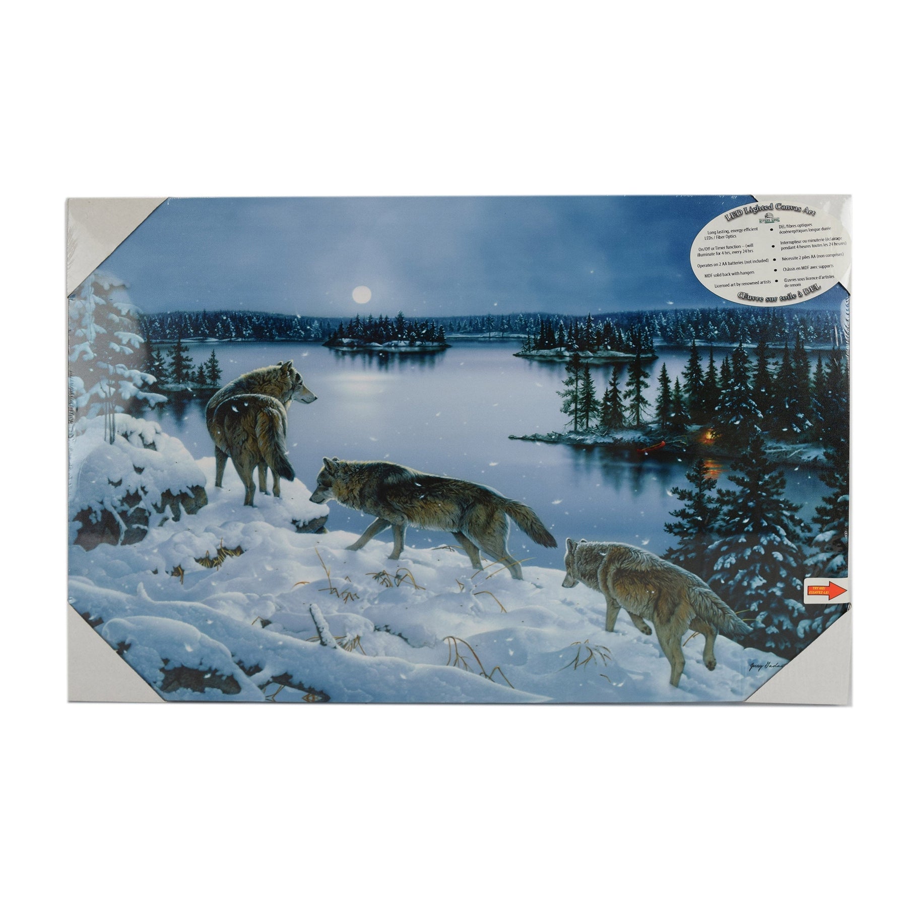This LED artwork from River's Edge Products is titled "Nite Wolves," by Jerry Gadamus - JQ Licensing. Makes for a perfect gift for any outdoor enthusiast or a great addition to any outdoor themed home decor.