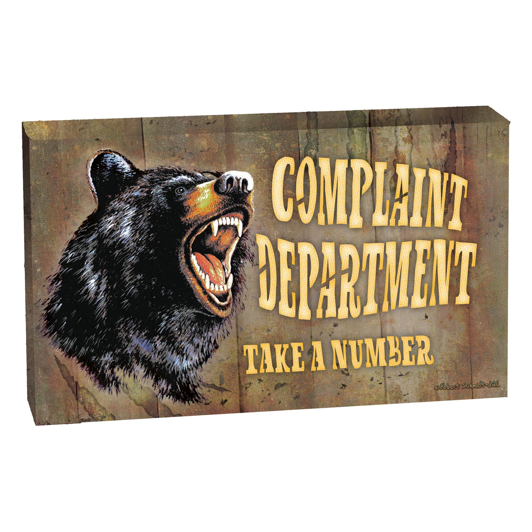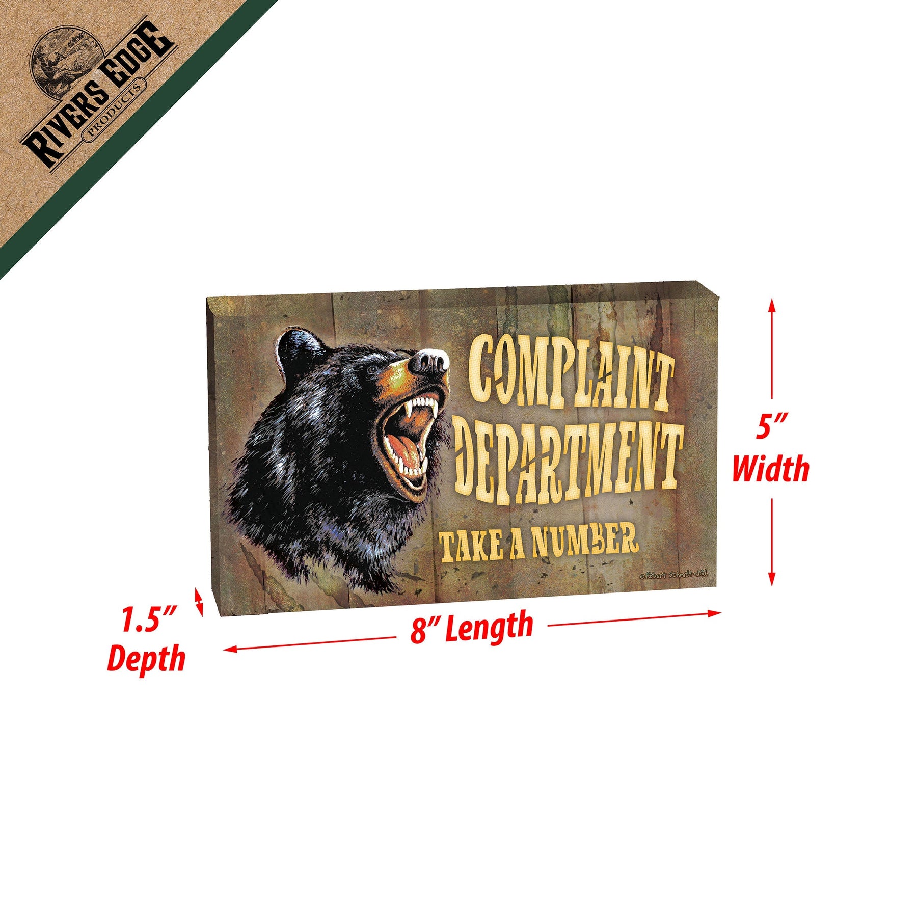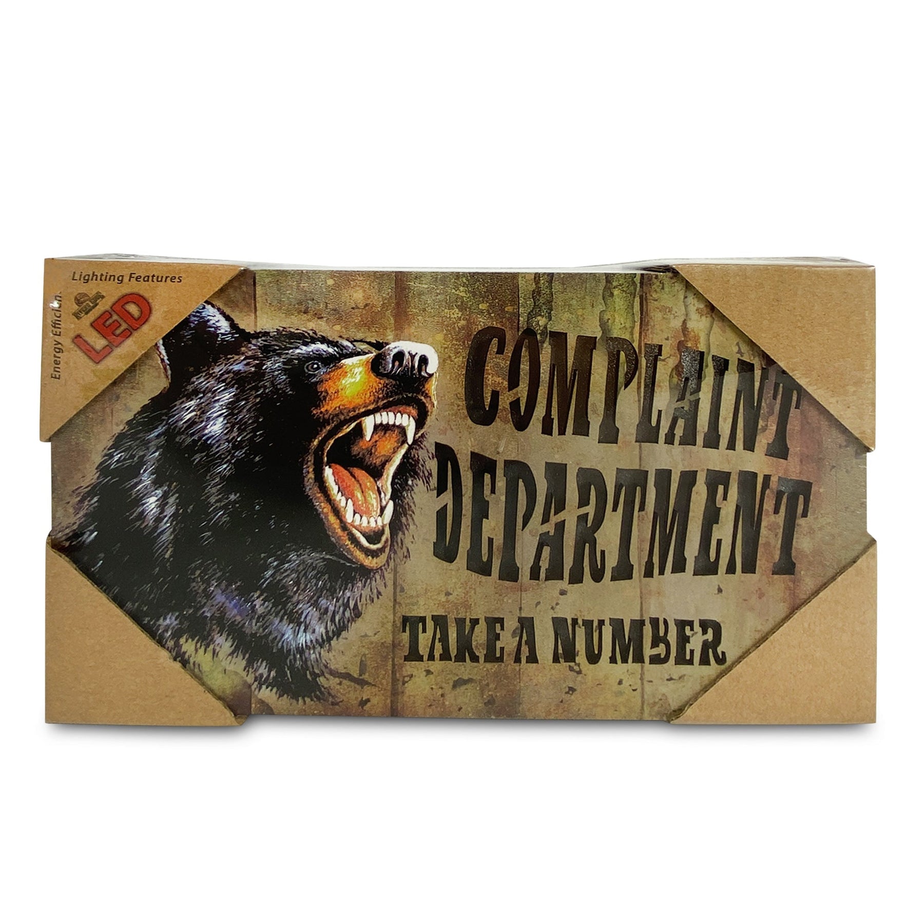 The complaint department LED box from River's Edge Products feature great art and messages that any outdoor enthusiast can identify with. The artwork showcases a angry black bear with the lighted message "Complaint Department Take a Number."  Makes for a perfect gift idea for any outdoor enthusiast.