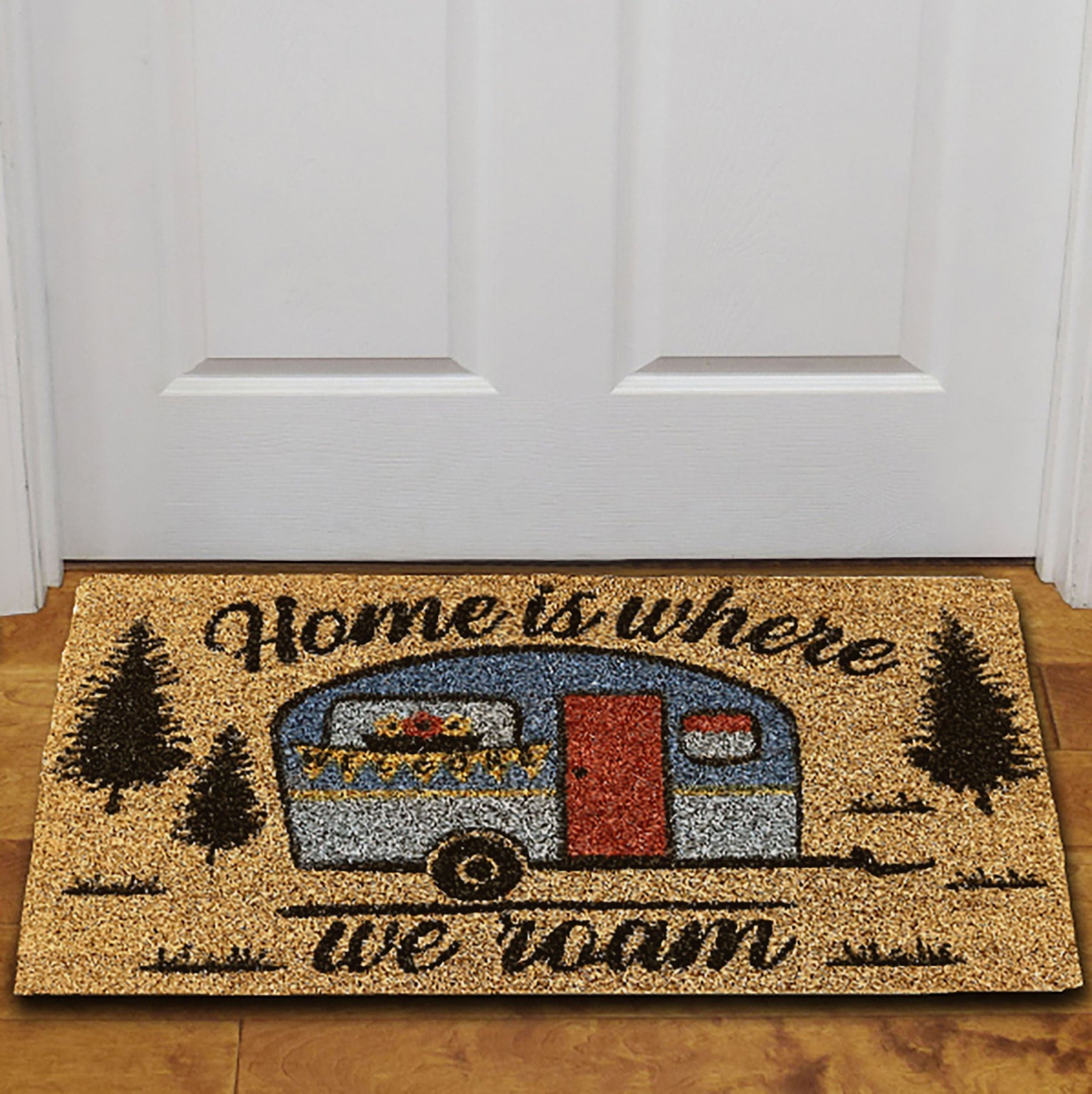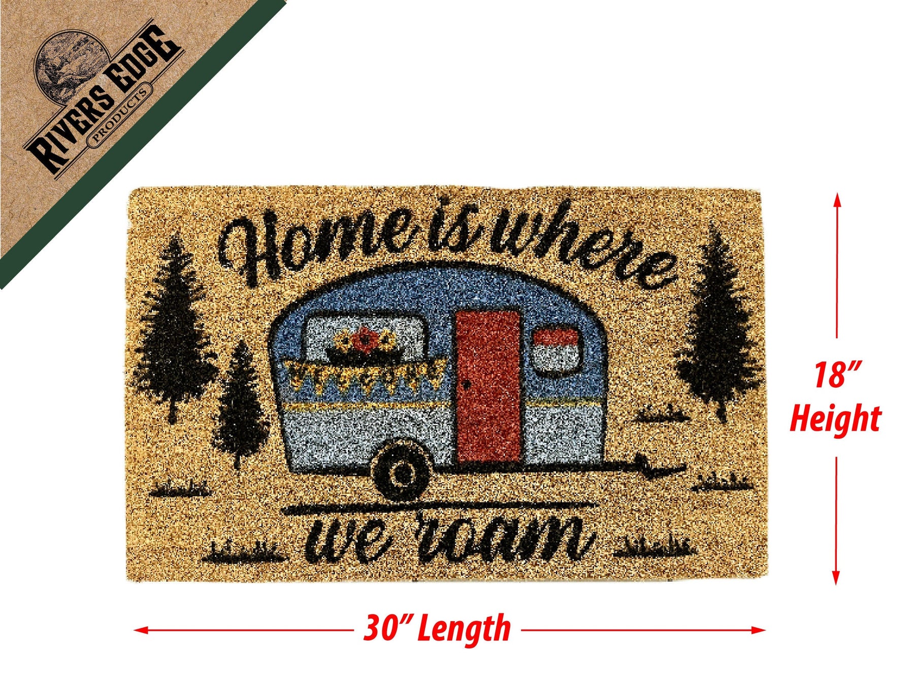 The Home Is Where We Roam coir mat by River's Edge Products will make your porch, or campsite more welcoming and accentuate your appreciation of the outdoors. The mat features a charming retro camper.