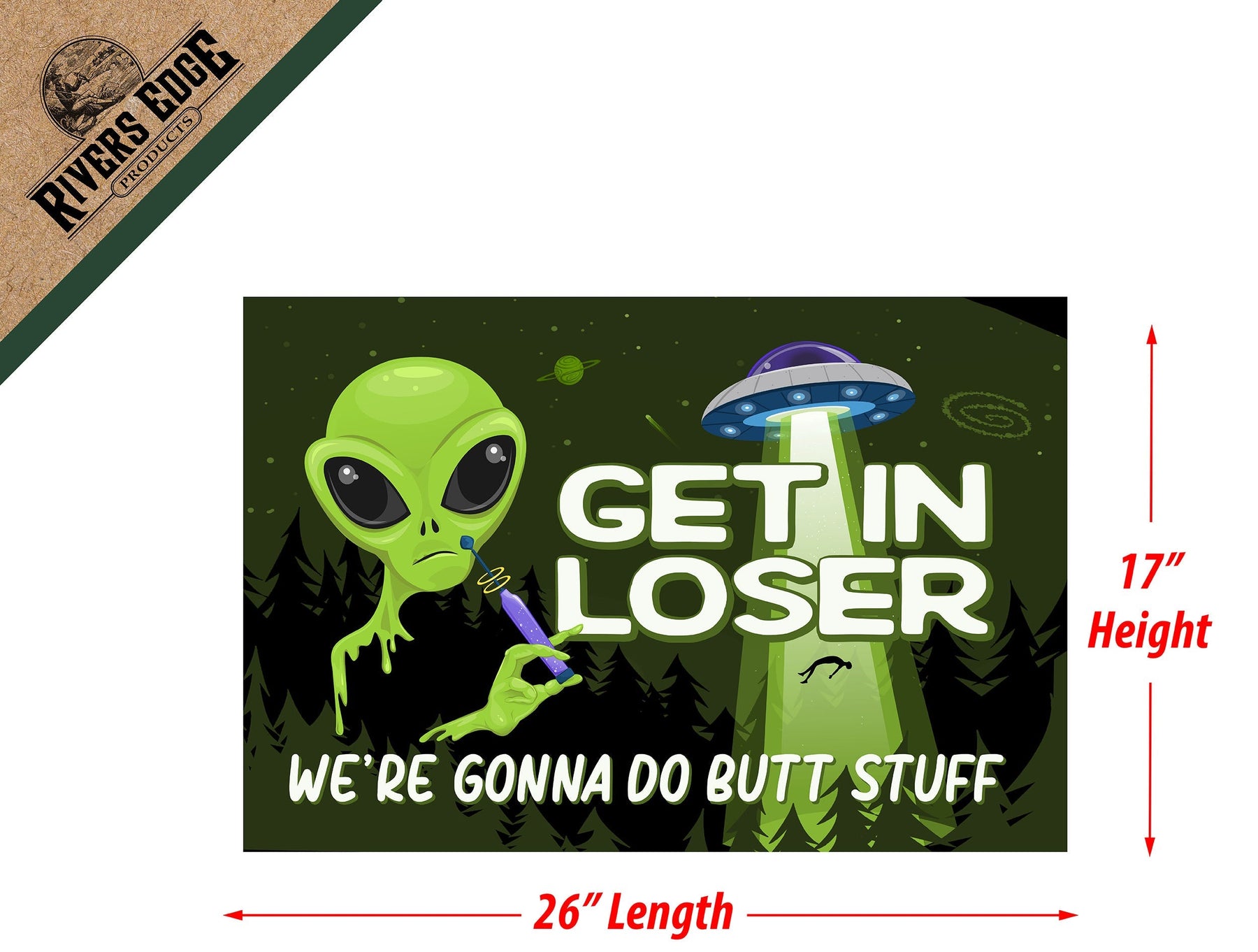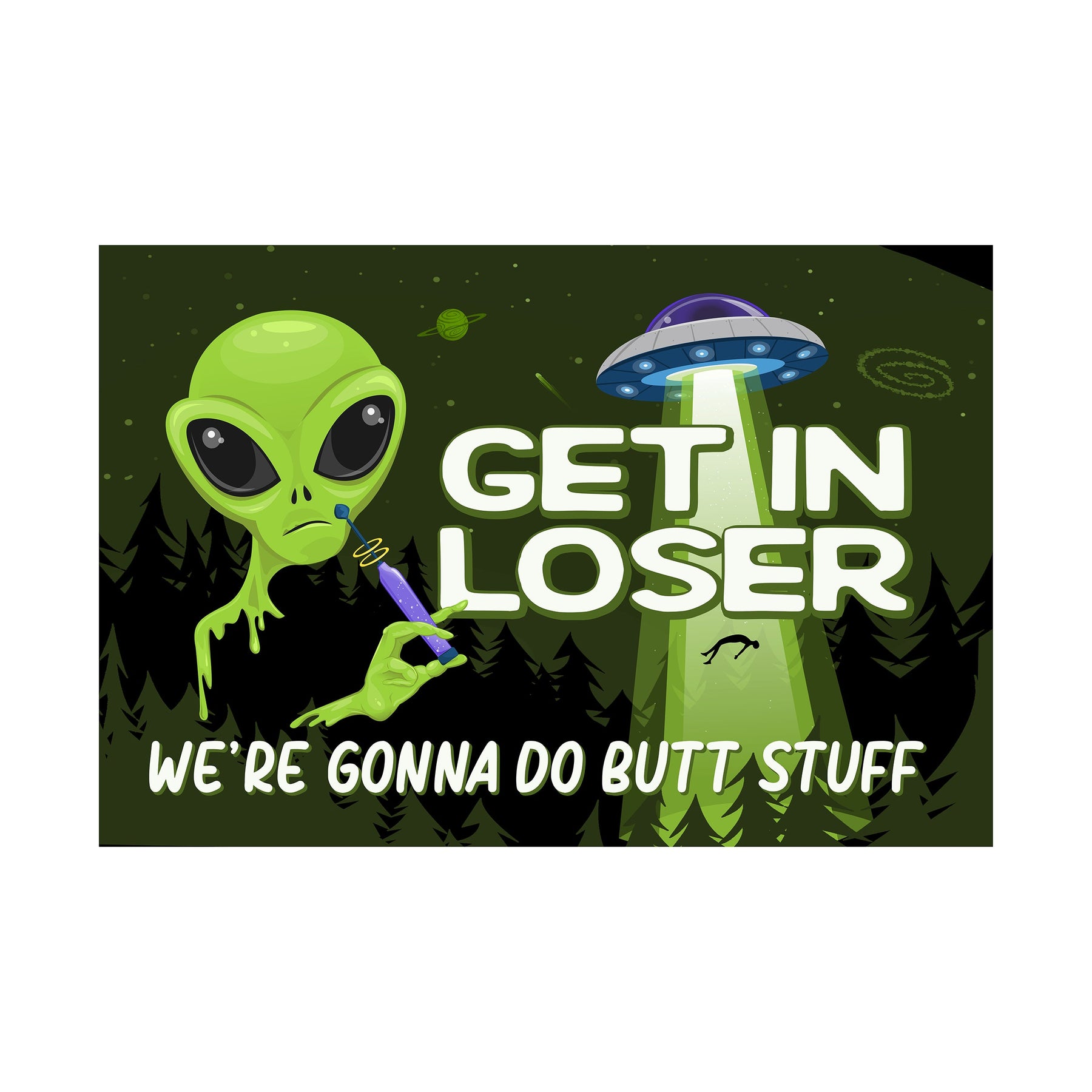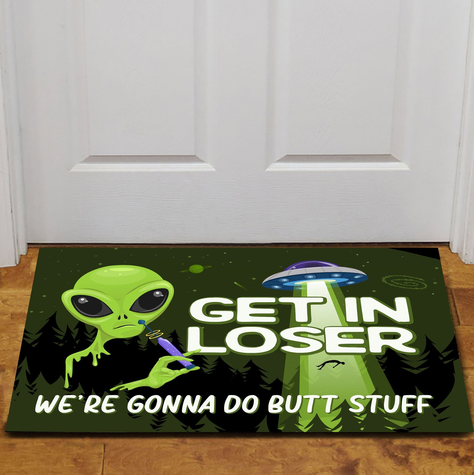 The rubber door mats from River's Edge Products features an alien with a UFO.