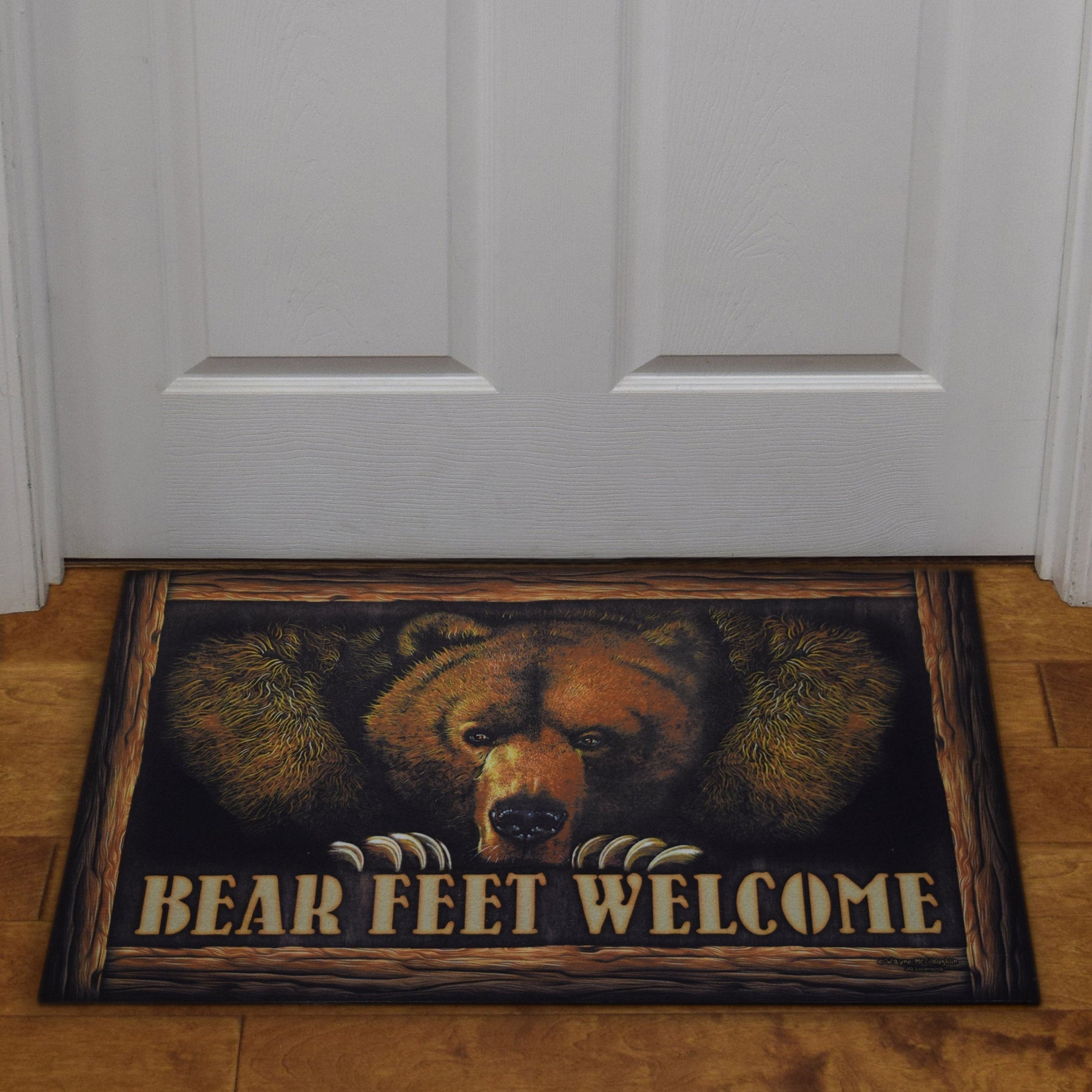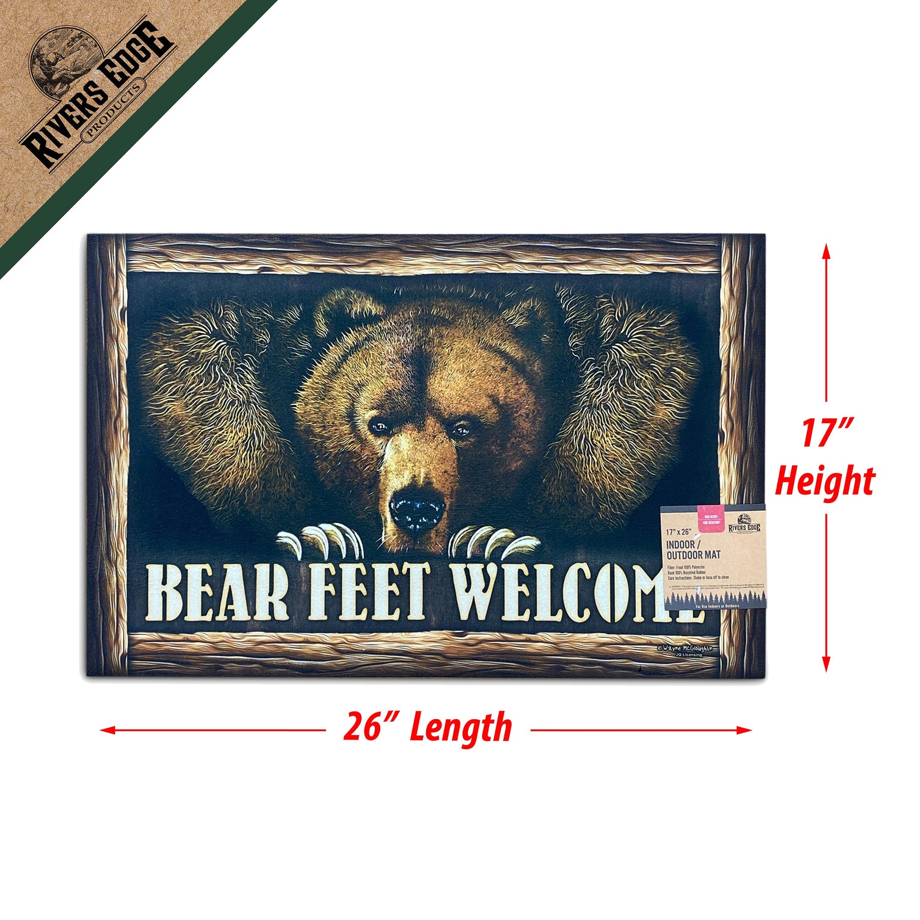 The rubber door mats from River's Edge Products features a bear and 'Bear Feet Welcome' sign.