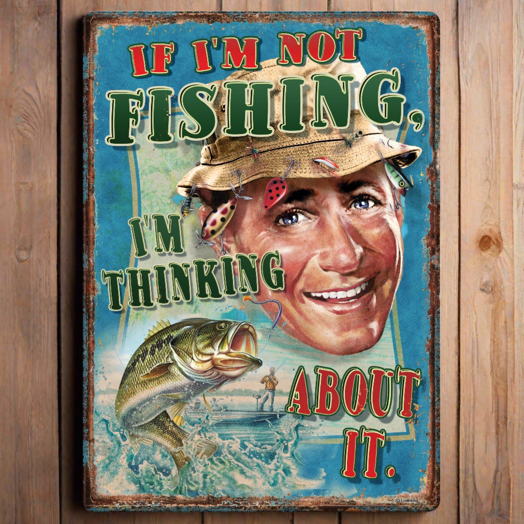 This sign for those that think about fishing twenty-four seven. This metal tin sign from Rivers Edge Products is ideal wall decor for any outdoor enthusiast. Customize your garage, home bar, or living space with this expressive tin sign.
