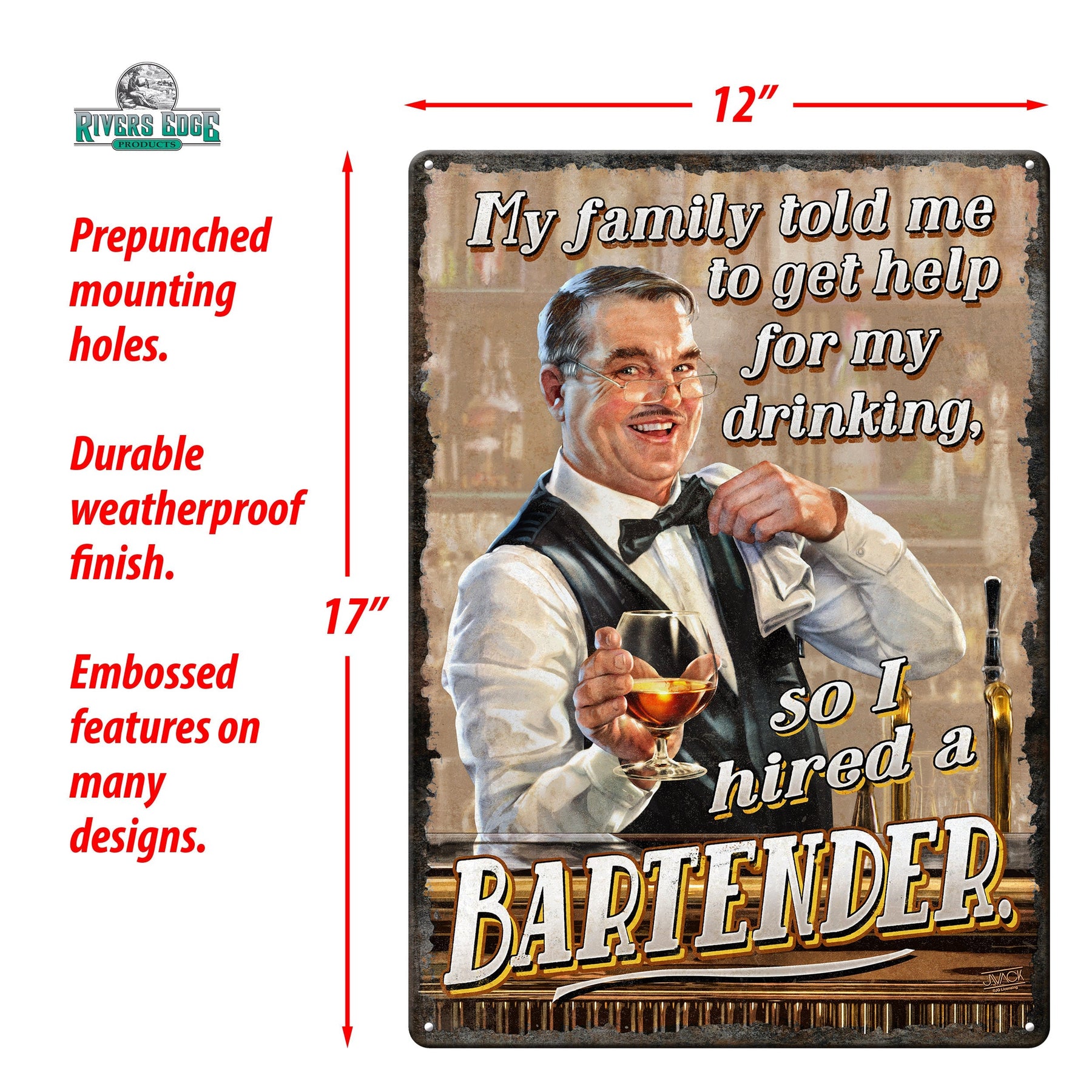 Mount this fine sign in your bar! This metal tin sign from Rivers Edge Products is ideal wall decor for people with a sense of humor. Customize your garage, home bar, or living space with this funny tin sign.
