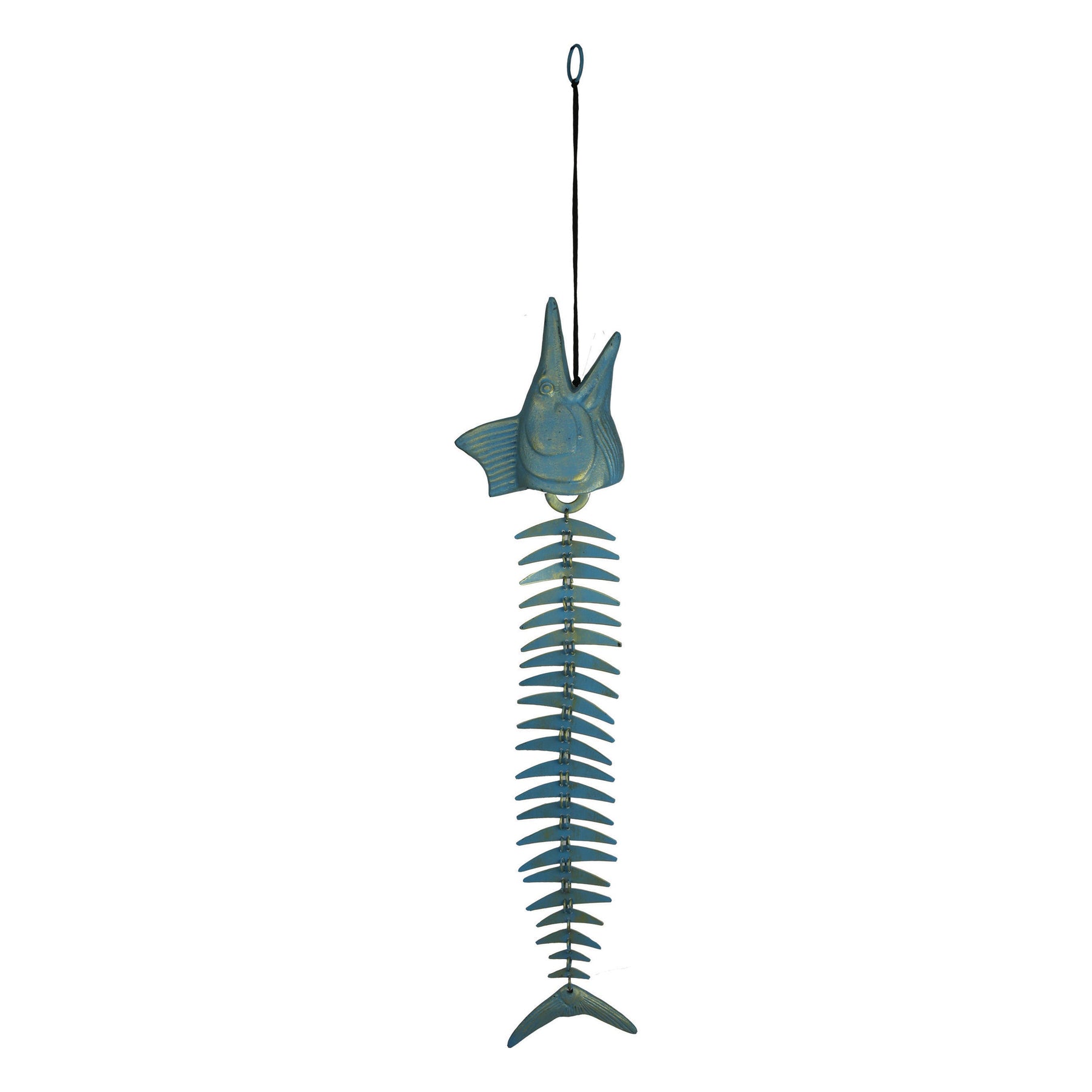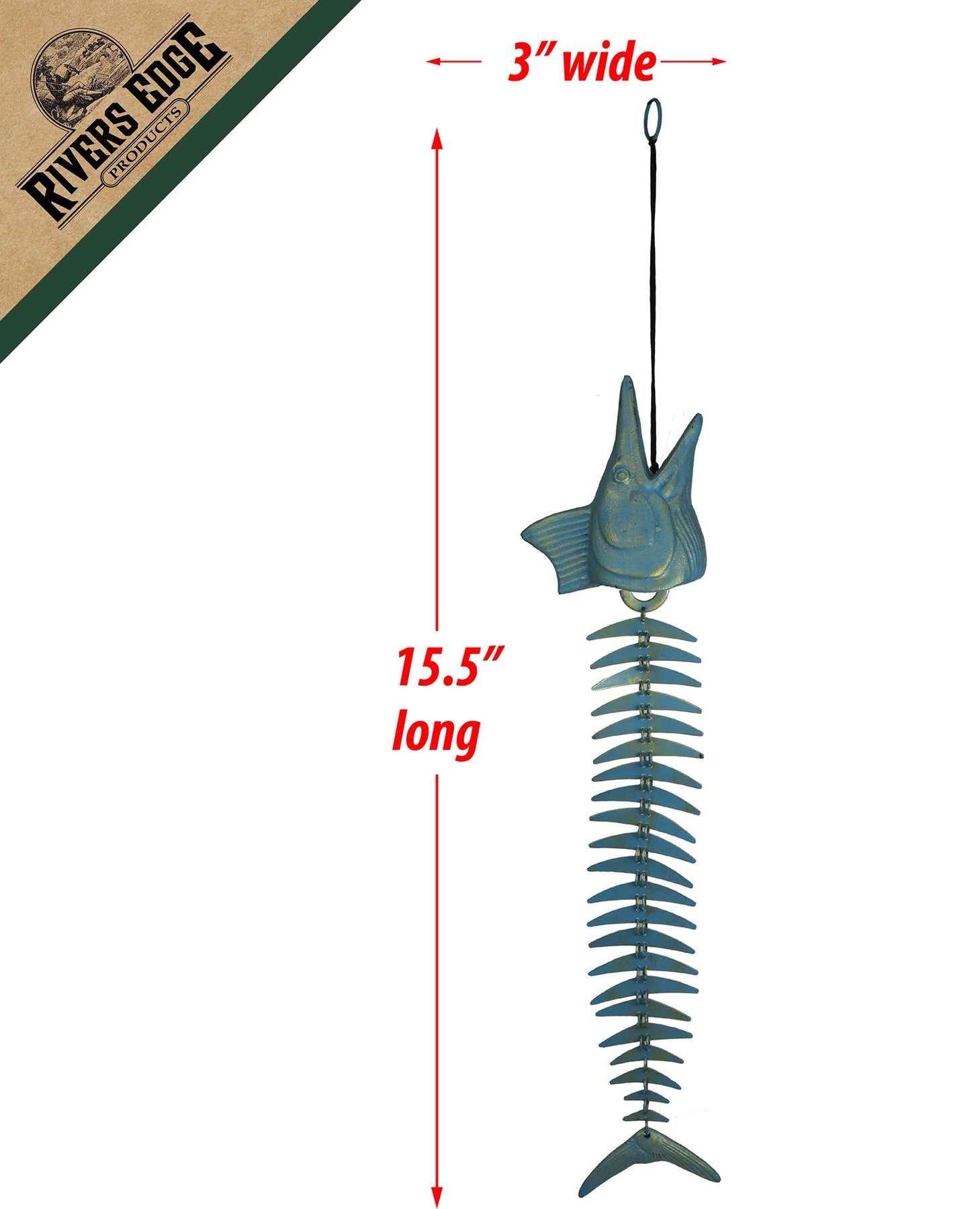 This marlin fishbone windchime from River's Edge Products will add a charming audible element to your garden. Shaped to resemble a marlin, this windchime has a classic patina finish that adds to its coastal feel. You can hang this windchime using the brass ring at the end of the hanging cord. Packaged in a hanging clam pack. This Marlin Fishbone Windchime's melody will encourage your guests to relax and stay a while.