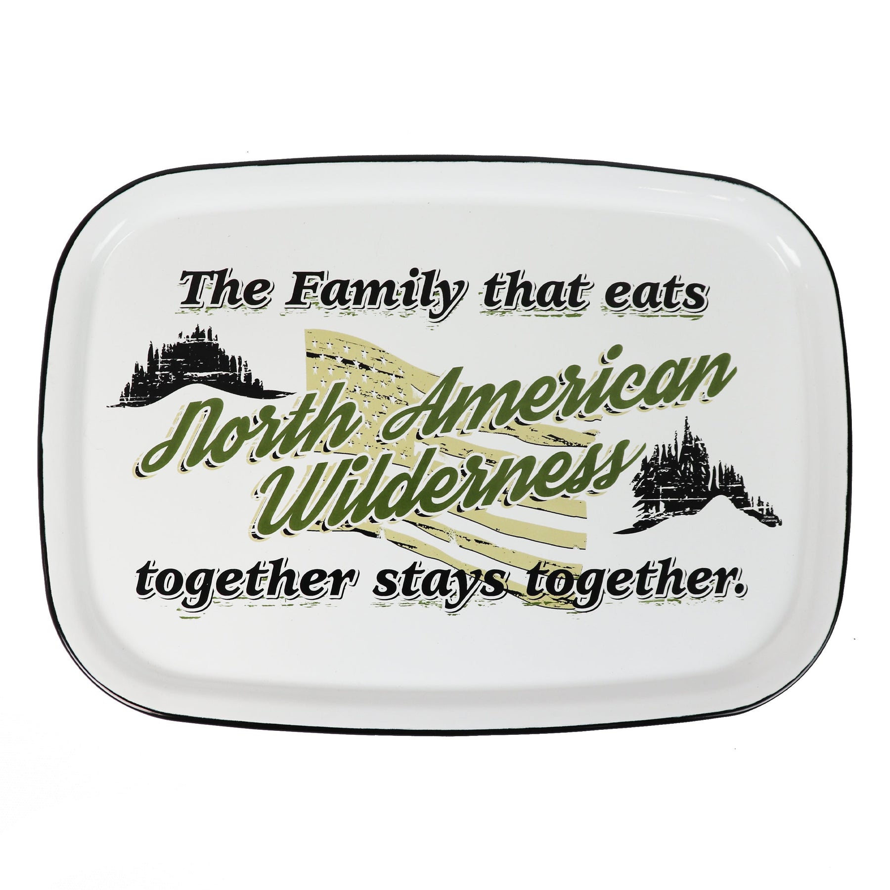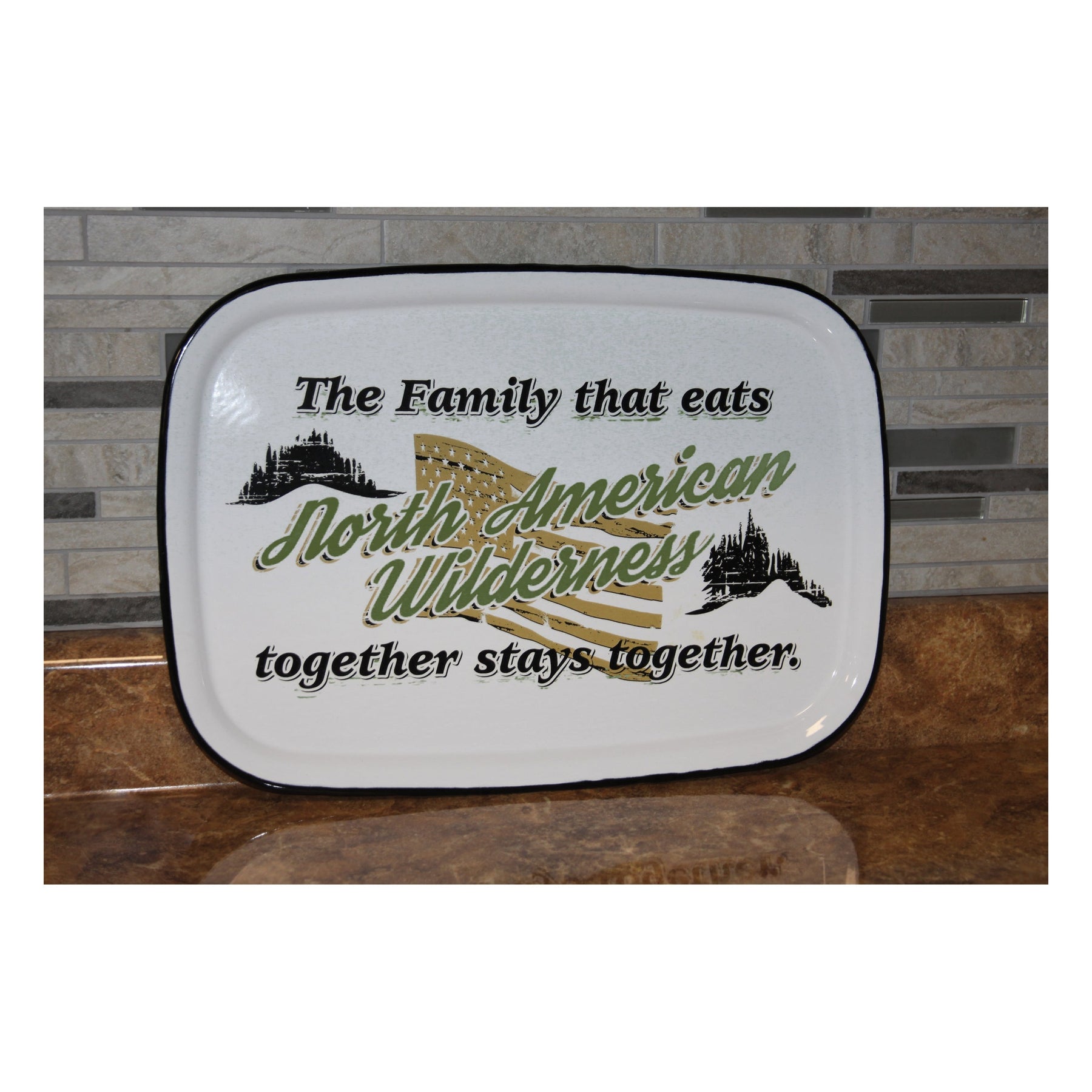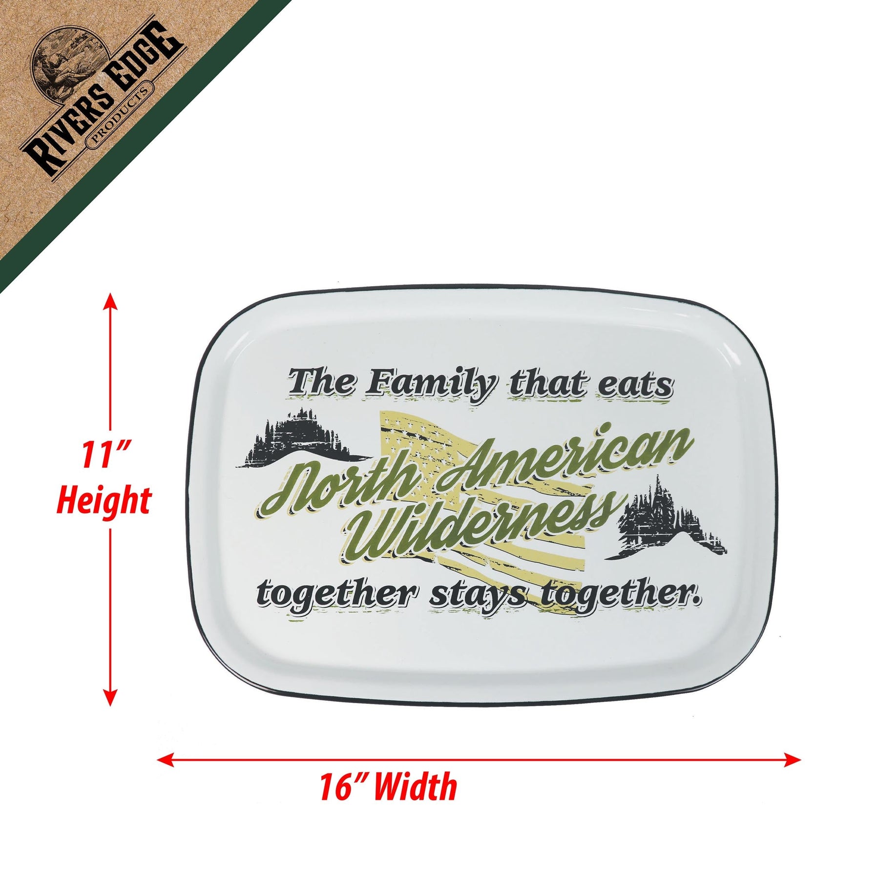 Rivers Edge Products North American Wilderness Porcelain Enamel Tableware. Metal construction and coated in white porcelain enamel. Perfect for home, cabin, lake house or camper. Easy cleanup. Do not use in oven or microwave. Food grade and conforms to FDA requirements, lead and cadmium free. Freezer safe.