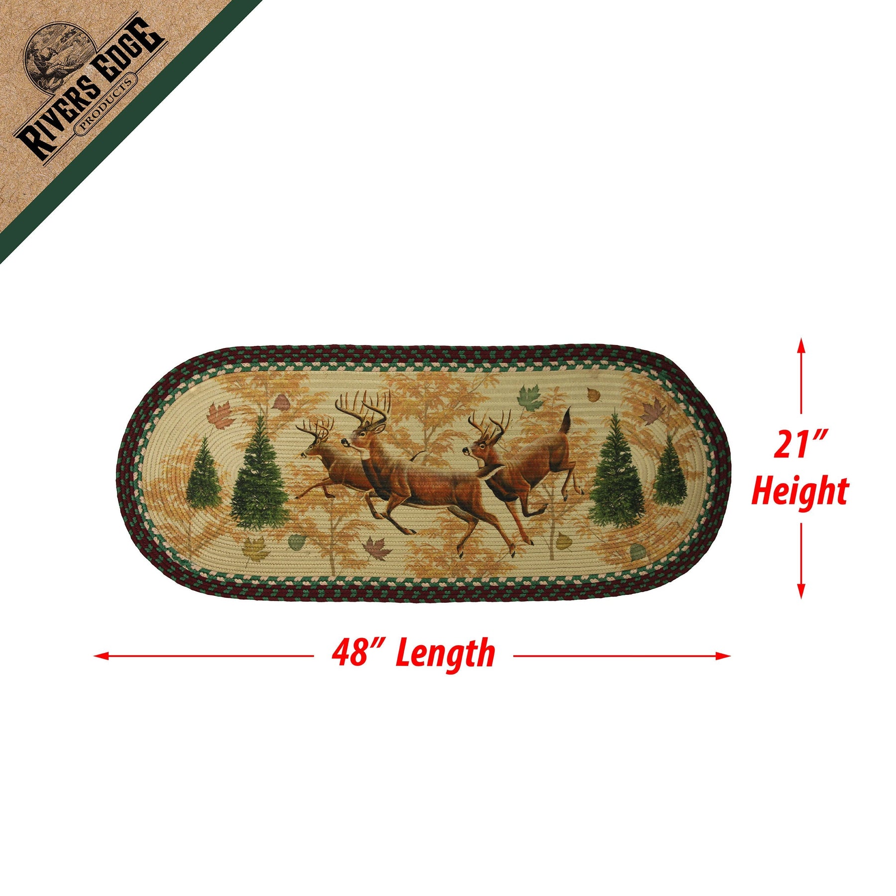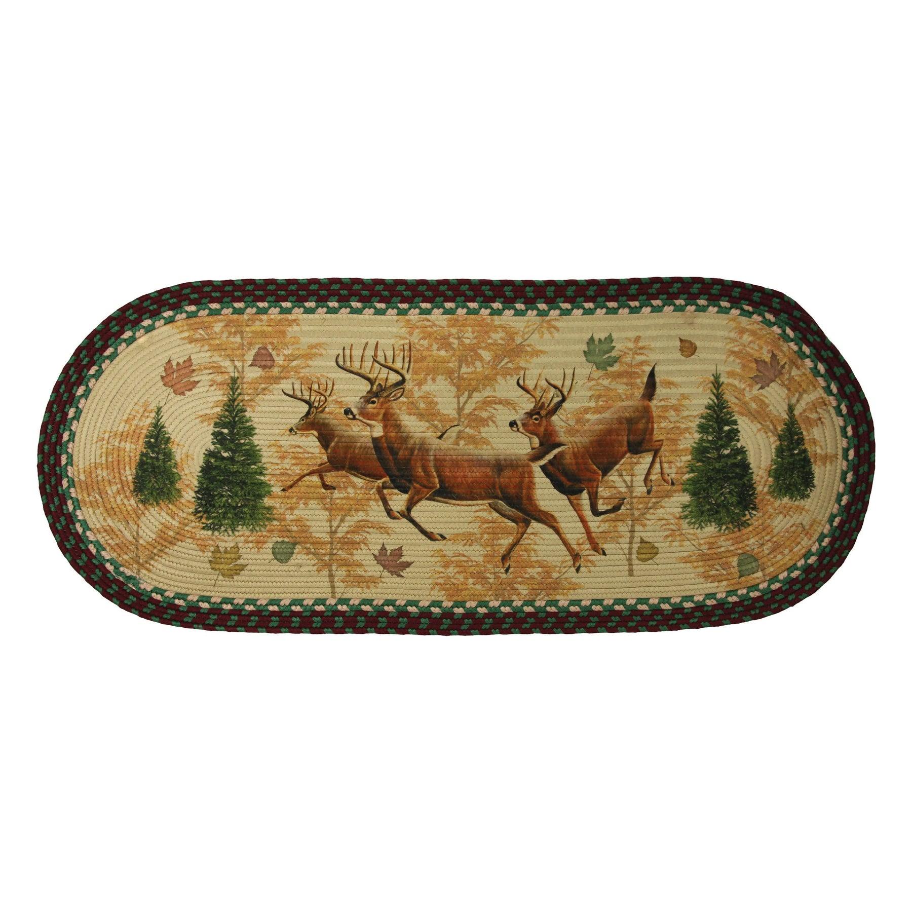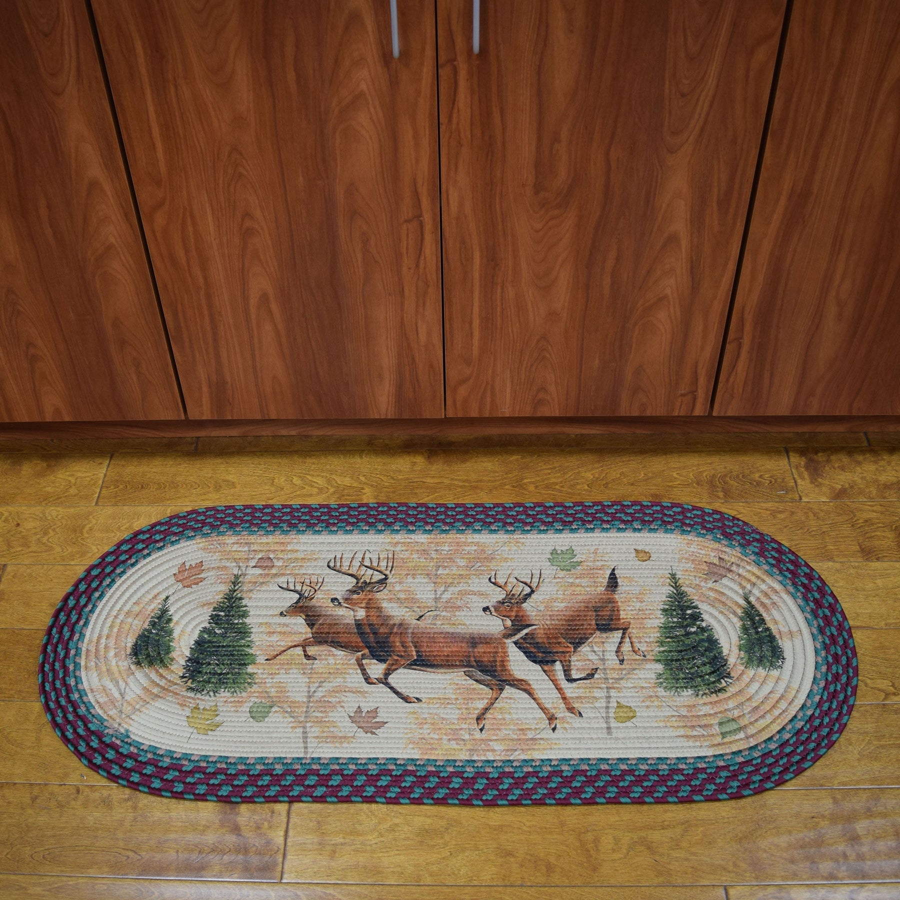 The deer braided runner rug by River's Edge Products will complement your rustic cabin decor with its classic deer design. The Deer Braided Runner Rug will bring a little of the outdoors you love into your home.