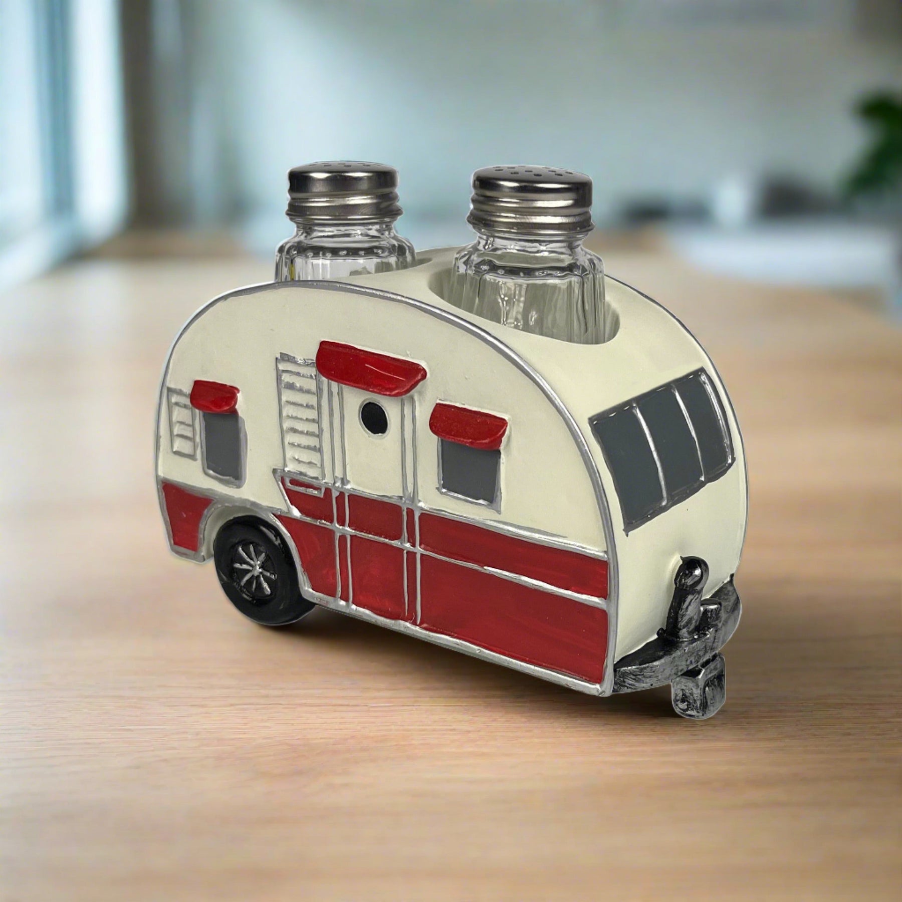 This RV Camper salt and pepper shaker set from Rivers Edge Products will be a welcome addition to your dining room table. The camper is hand-painted poly resin and is highly detailed and colorful. The Rv Camper Salt and Pepper Shakers will allow you to season your meal with style.