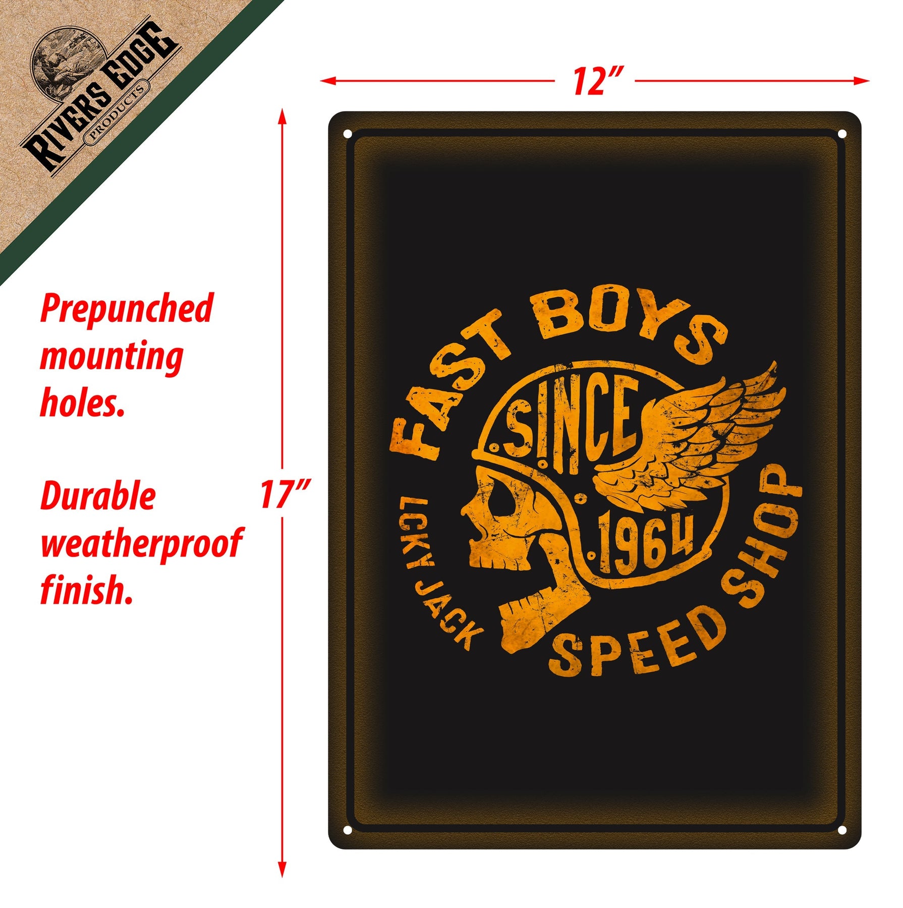 This metal tin sign from Rivers Edge Products is ideal wall decor for outdoor enthusiasts with a sense of humor. Its overall dimension measures 17 inches by 12 inches wide, has rolled edges and pre-punched corner holes for easy wall mounting. A durable weatherproof finish ensures that your sign will be protected from the elements. Customize your garage, home bar, or living space with this funny tin sign.
