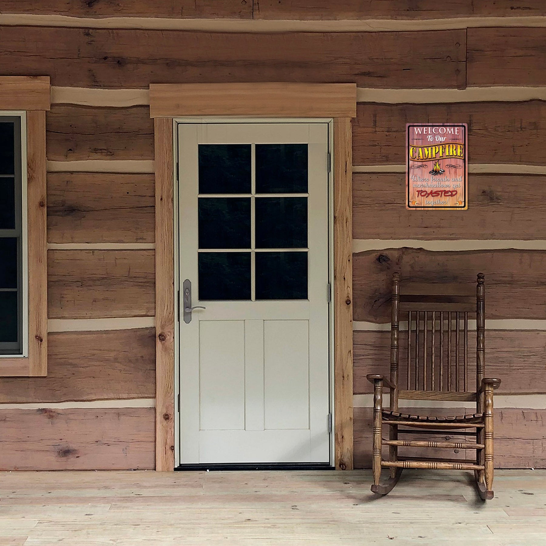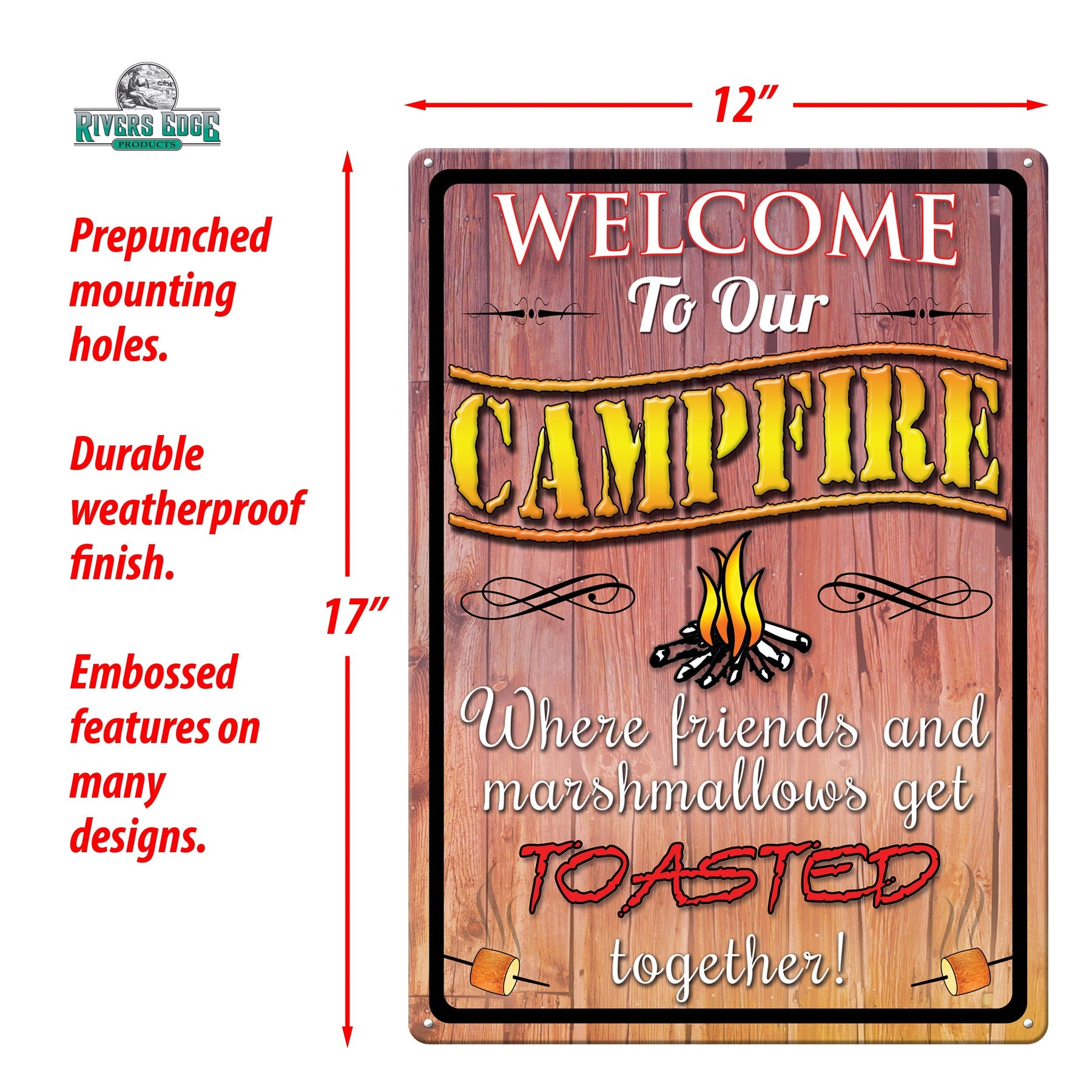 Welcome your campfire guests! This metal tin sign from Rivers Edge Products is ideal wall decor for campers and outdoor enthusiasts. Customize your camper, firepit, or outdoor living space with this outdoorsy tin sign.