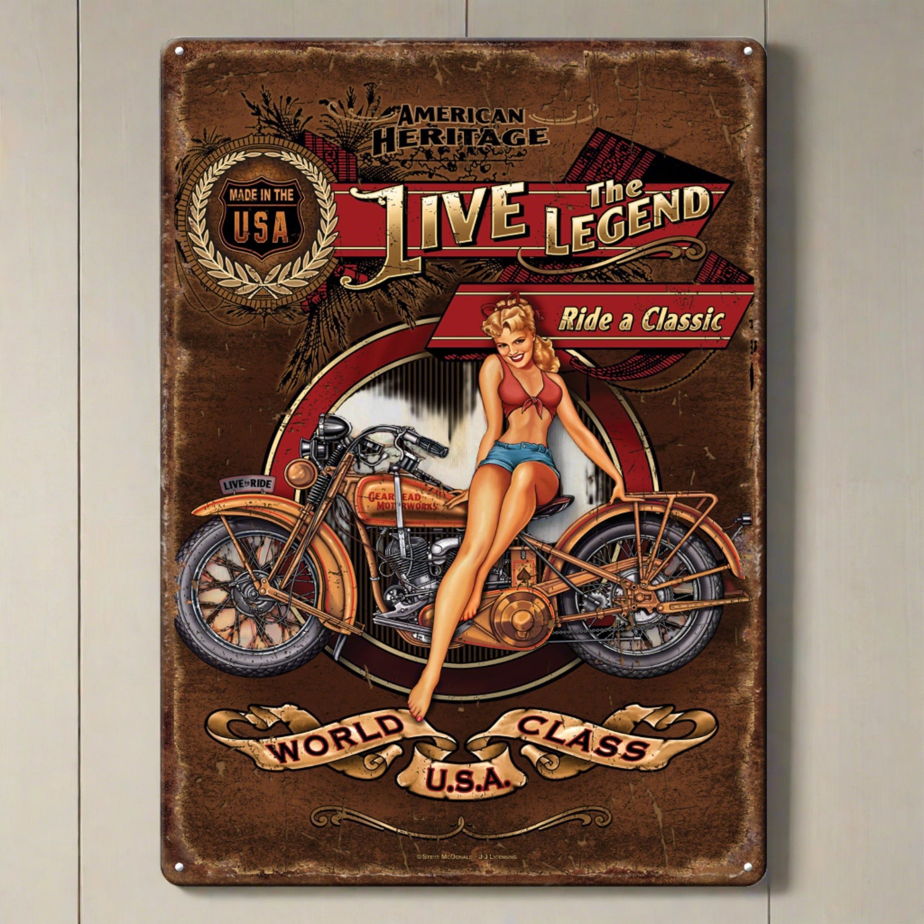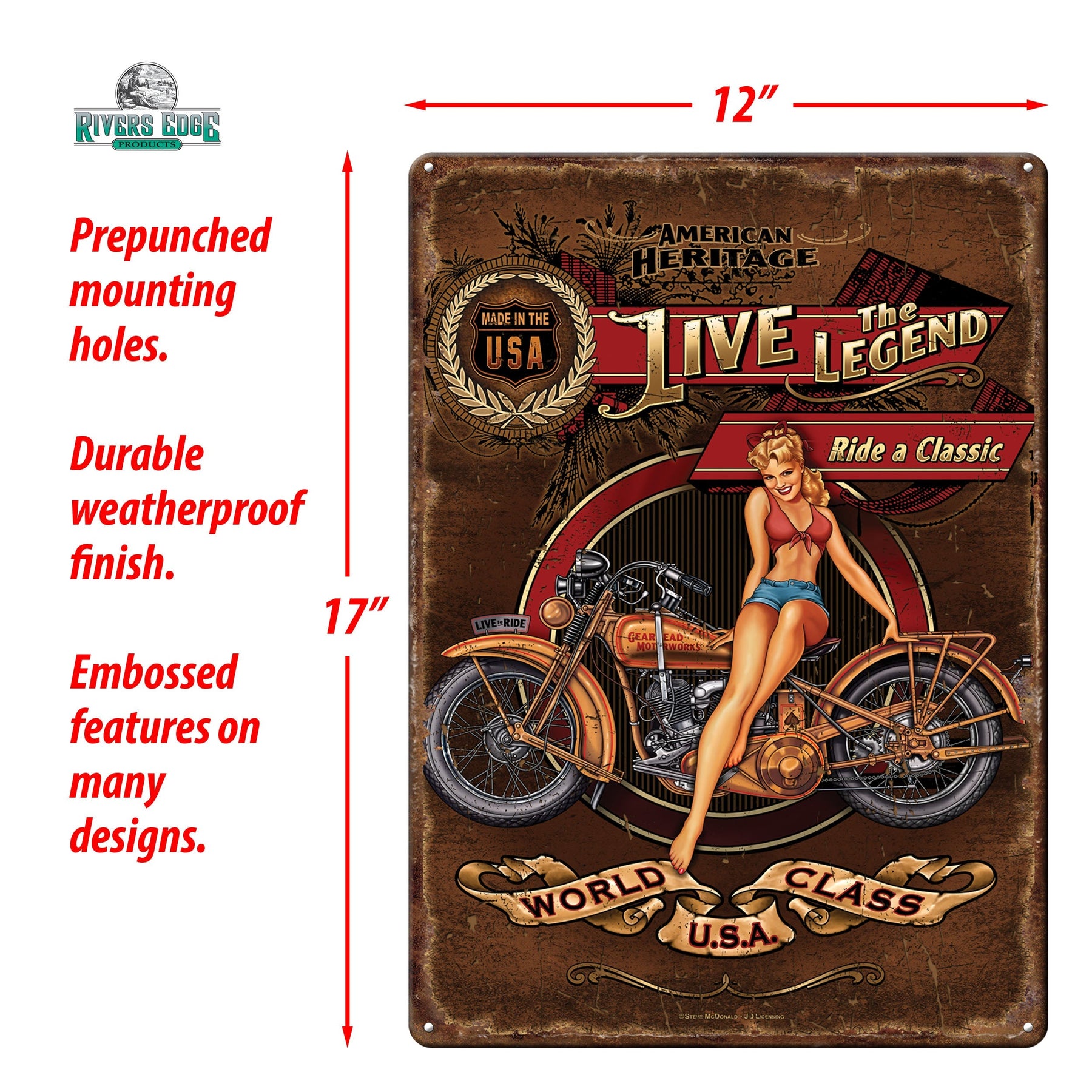 Motorcycle enthusiasts will love this classic. This metal tin sign from Rivers Edge Products is ideal wall decor for outdoor enthusiasts with a sense of humor. Customize your garage, home bar, or living space with this funny tin sign.