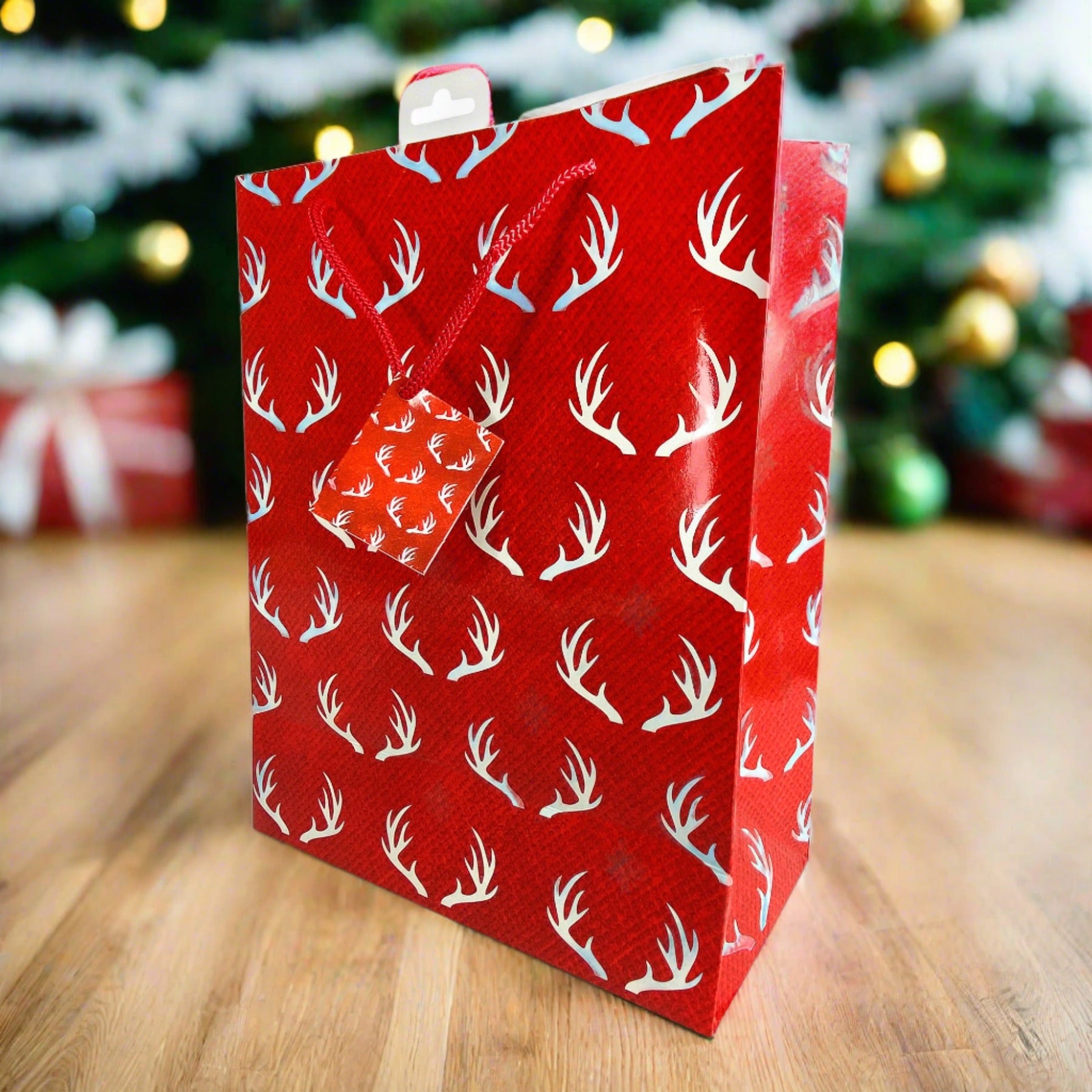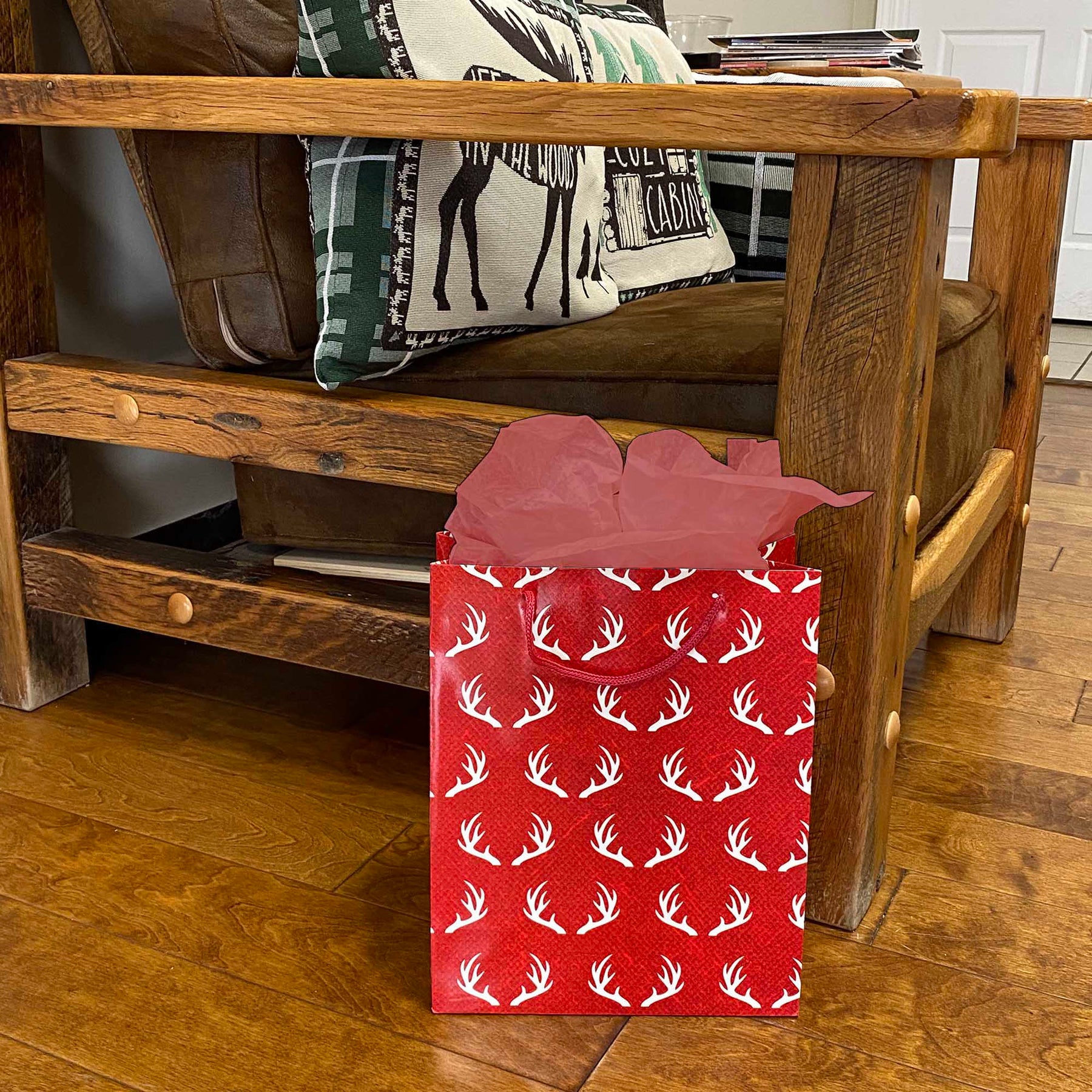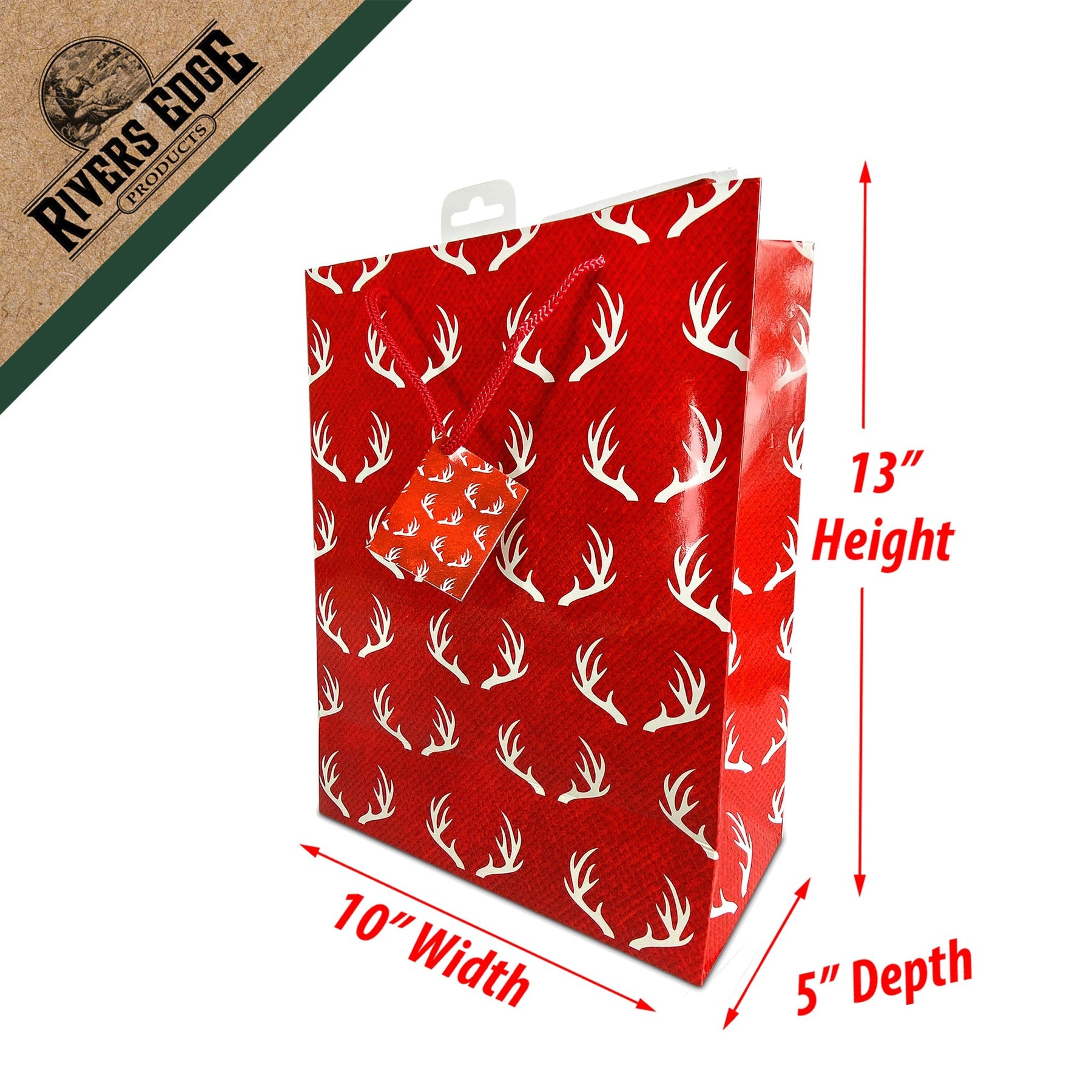 The Rivers Edge Products medium gift bag features outstanding licensed artwork that showcases beautiful stylistic antlers. The bag also features nylon handles, an attached card, and a removable hang tab for pegboard hanging. These gift bags measure 13-inches by 10-inches by 5-inches. Perfectly compliment any gift for an outdoor enthusiast with this gift bag.