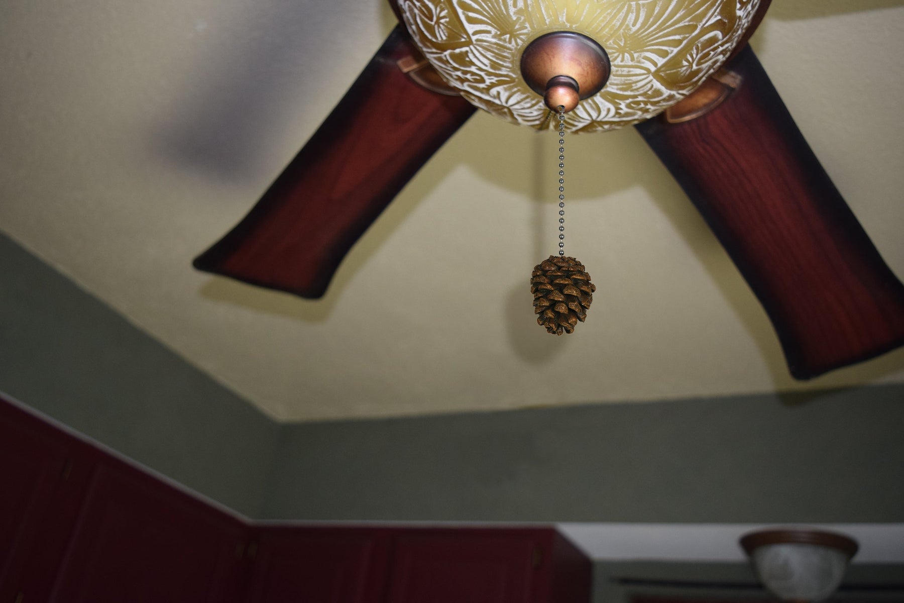 The ornament is shaped like a brown pine cone and makes for a great addition for your outdoors themed decor. This ceiling fan pull ornament will not only enhance your current decor, it extends your current fan pull chain so it is easier to reach.